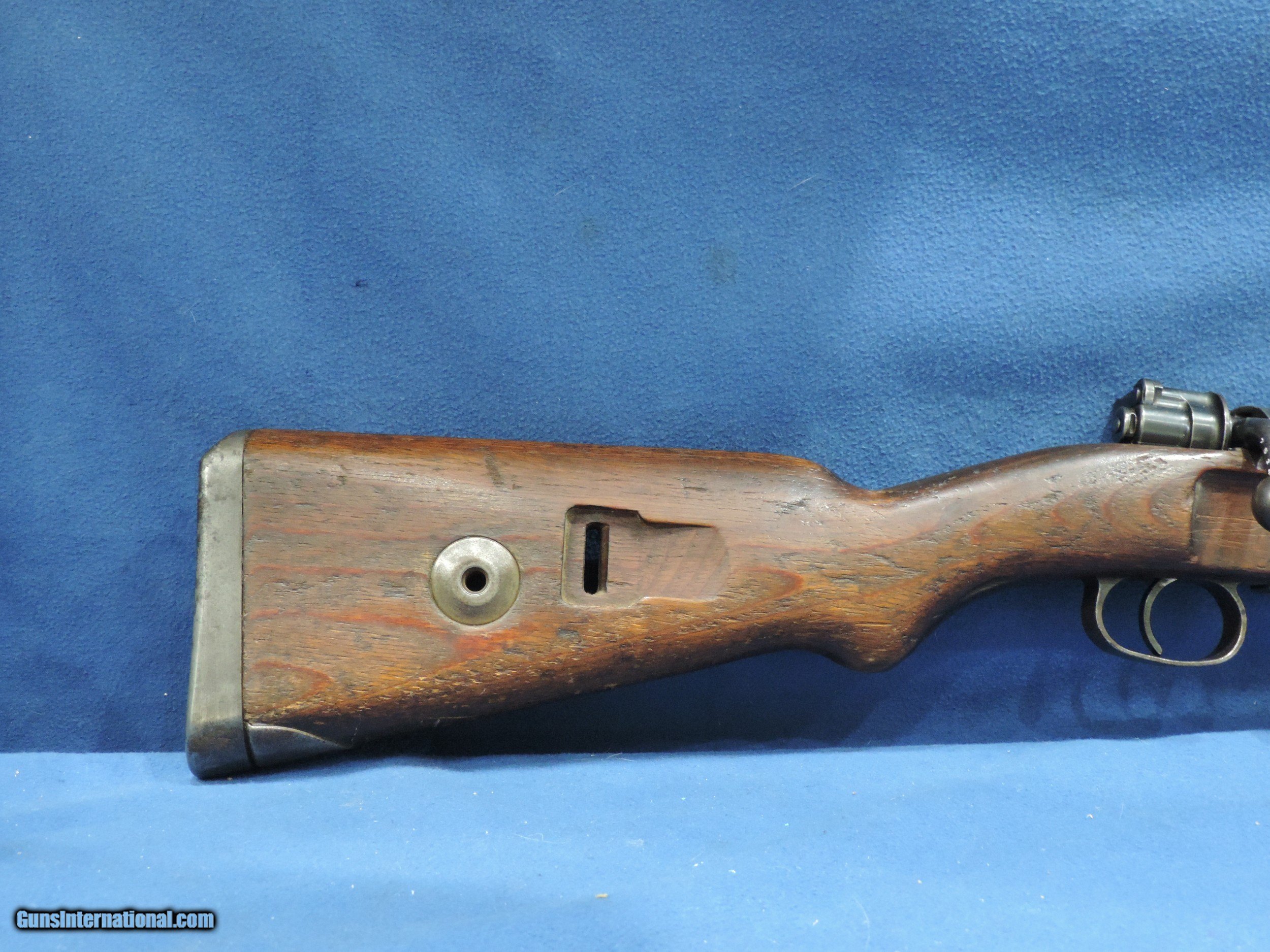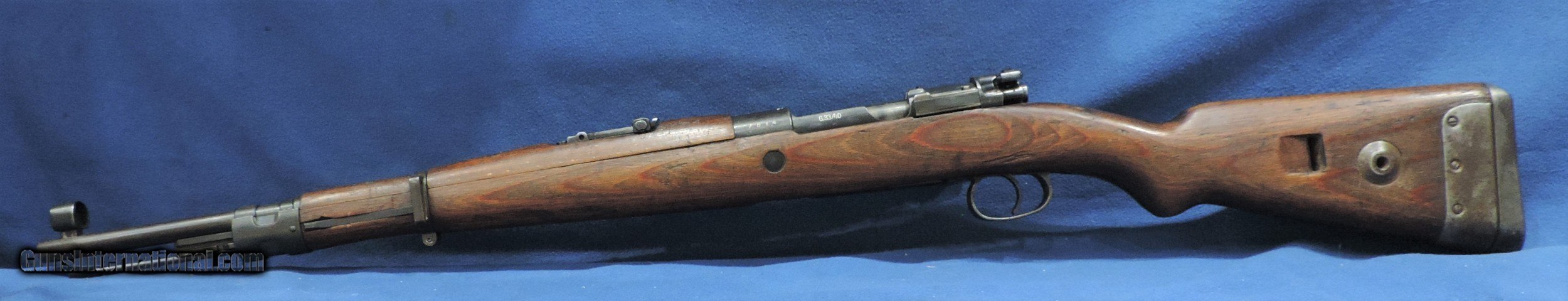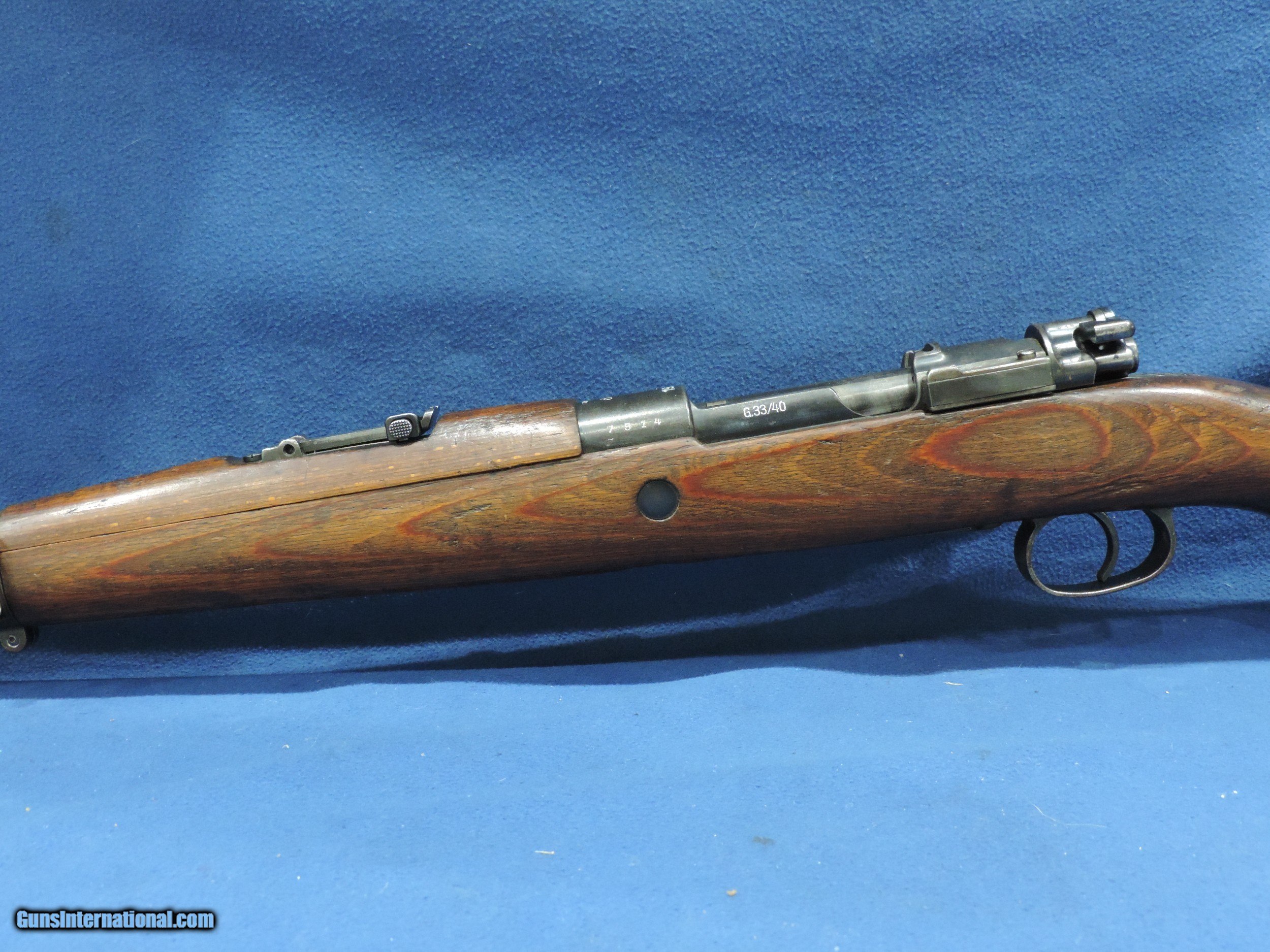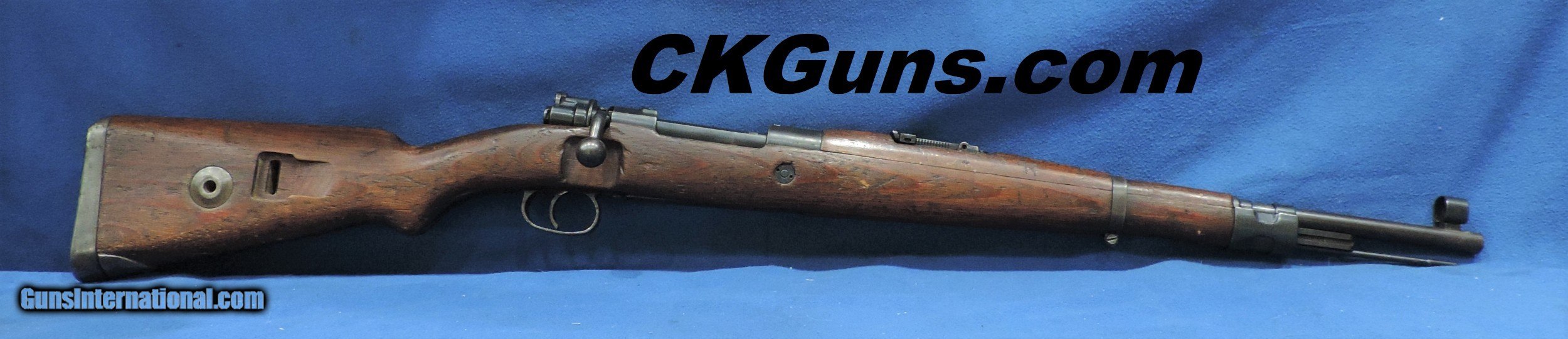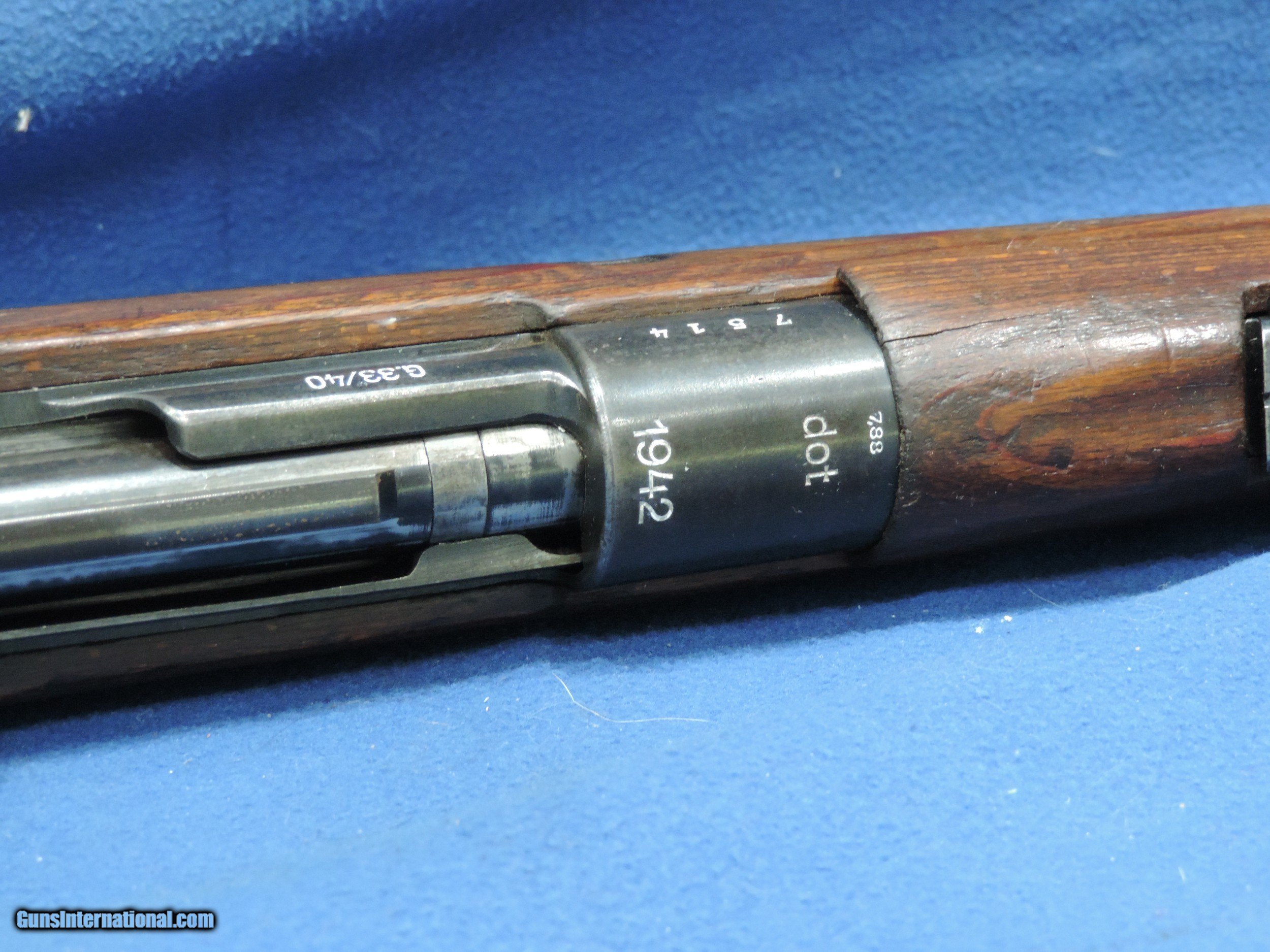 Description: INV. 7953 RARE MAUSER (NAZI) G33/40, (DOT/1942), CAL. 8MM, #7514. A REAL BEAUTY. THE GUN IS ALL MATCHING WITH THE CORRECT HOLLOW BOLT HANDLE. IT IS IN REALLY GREAT SHAPE RETAINING ABOUT 85-95% OF THE FACTORY BLUE. THE LITTLE LOSS THERE IS, IS DUE TO SOME SLIGHT TONING, SOME PIN PRICKS AT THE MUZZLE AND THE USUAL SHARP EDGE SILVERING. THE STOCK IS IN FINE SHAPE, NO SPLITS OR CHIPS JUST SOME SLIGHT DINGS. THE BOLT RAILS THE FEED RAMP AND BOLT FACE SHOW MODEST USE. THE BORE IS SUPER, SUSHINE BRIGHT WITH RAZOR SHARP RIFLING. IT COMES WITH THE ORIGINAL FRONT SIGHT HOOD AND A CLEANING ROD. THIS RARE GEM WOULD ENHANCE ANY COLLECTION, IS A GREAT INESTMENT AND WOULD BE REAL FUN AT THE RANGE. MODESTLY PRICED AT ..SHIPPED....$3095*** ***INCLUDING A "PURCHASE SATISFACTION GUARANTEE"*** To purchase this firearm or if you want to request more information contact us at: Email ckguns[at]ymail[dot]com Phone 201-512-0002 Cell 201-575-6838 FAX 201-215-4759 We accept most major credit cards. Prices shown are Discounted 3% for Cash or Check. The buyer must be familiar with all the laws governing the purchase and the ownership of firearms in their own city and state. The Yankee Armorer, Inc is not responsible for any failure to comply with or observe these laws. The Yankee Armorer, Inc will only ship after full payment and receipt of all required documents. Shipping: Add $35.00 for handguns, $45.00 for long guns. New Jersey buyers are subject to a 7% sales tax. The Yankee Armorer, Inc offers a 3 day inspection period with full refund upon return of intact firearm and in the original condition. The Yankee Armorer, Inc offers a no interest lay away program - 25% down; 25% in 30 days; 25% in 60 days; and full payment in 90 days. Any violation of this policy is subject to restocking and forfeiture of all payments. Any variation from this policy must be agreed to in advance. Unshipped Cancelled sales are subject to a 20% restocking fee. Be advised that all firearms sold by The Yankee Armorer, Inc. or the Gun Exchange, LLC (SELLER) are sold as collector’s items. They have not been fired or tested for safety and must be examined by a license gunsmith prior to use. By purchasing any item from the (SELLER), you are agreeing to hold the (SELLER) free from any damages or lawsuits of any nature. Any item left for transfer or storage will be charged to $25.00 per month, per item from the day of its receipt. Any variation from this policy must be agreed to in advance. Store hours 10:00 am to 5:00 pm Tuesday -Saturday. It's always best to call for appointment. Store 201-512-0002, cell 201-575-6838. SOLD Rifle Caliber: 7.92x57mm Mauser |