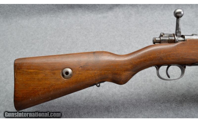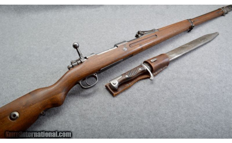 Description: SOLD Curio/Relic: Yes Caliber Info: 7.92x57mm Mauser Metal Condition: Excellent with usage and handling marks. Silvering on most of the sharp edges and action. Bluing on barrel is good. Wood Condition: Excellent with handling marks/dents. The majority of the dents are on and around the butt of the firearm. Bore Condition: Good, rifling is sharp bore is dark Barrels: 29 Inches Stock: Straight hand stock with metal butt plate Stock Dimensions: LOP 13 Inches Fore End: Banded, straight thin fore end with bayonet attachment and cleaning rod Butt Pad: Metal butt plate Weight: 8 Lbs. 10 Oz. Sights: Front blade with adjustable sliding buckhorn sight Extras: Bayonet included Item Location: Farmington, UT |