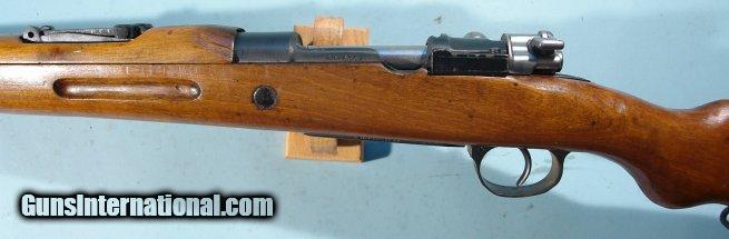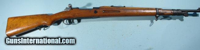 Description: SPANISH LA CORUNA MODEL 43 OR M43 MAUSER MILITARY RIFLE. 8mm Mauser cal. 24” barrel. Good condition overall with importer marked barrel. Arsenal refinish with 100% remaining. Non matching serial numbers but all original parts. Matching wood. Working order and good bore. SOLD Curio/Relic: Yes |