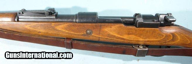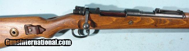 Description: SUPERIOR MAUSER K98 WW2 GERMAN K98k BYF/44 RIFLE. All original and matching in the 51,xxxf serial range. With the original sling. No import marks and a real WW2 bring back. 97% original blue. Shows only slight wear. All correct as to type and early 1944 year date with stock disc and correct sub-contractor cupped buttplate. All correct “EAGLE/135” Waffenampts. Perfect working order and excellent bore. Really nice example. SOLD Curio/Relic: Yes |