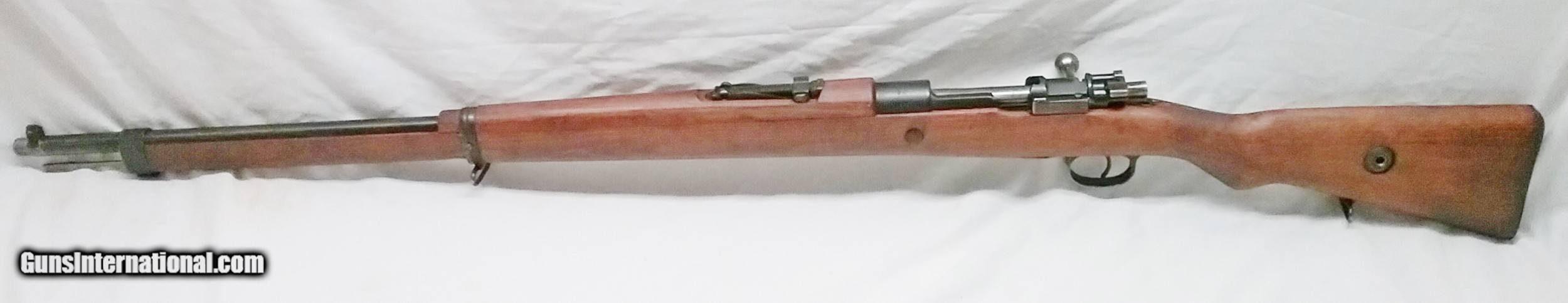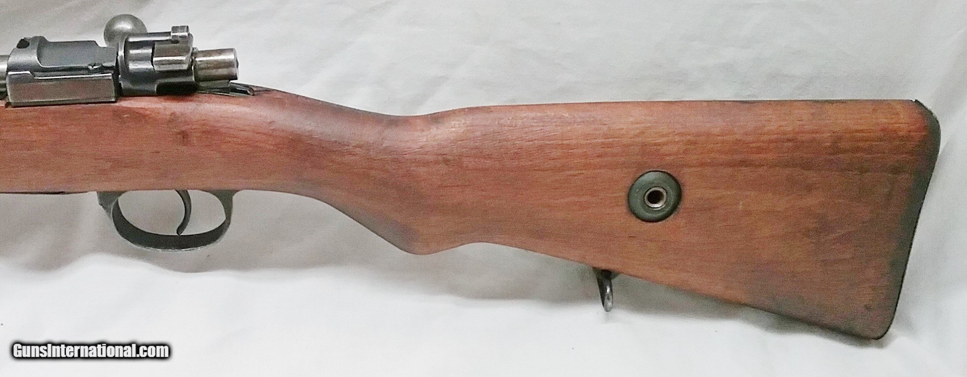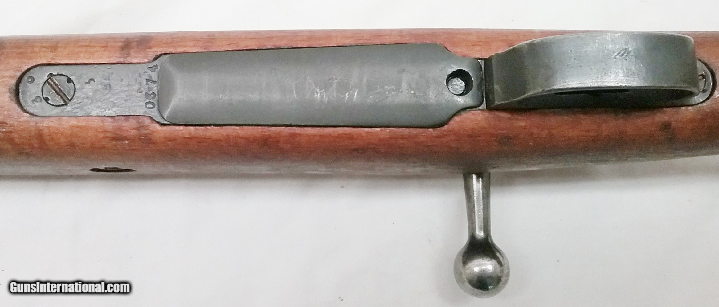 Description: This 1944 dated 8mm Turkish Mauser Model 1938 has a 29-1/4” blued tapered round barrel mounted with an adjustable rear sight and a drift-adjustable front sight. The top of the receiver is stamped with arsenal markings and the date of manufacture. The bore is very good. The Select Hardwood stock with metal buttplate and handguard are in good condition with the exception of some scratches and usage dents. The gun features a bayonet lug, a bolt disassembly tool on the buttstock and a cleaning rod. The numbers on this gun are non-matching. Length of pull is 13”, overall length is 49”, weight is 9.4 lbs. Our stock number is #C188. Will ship to any FFL, anywhere in the United States. Buyer pays freight and insurance. SOLD Rifle Caliber: 8x57mm JS Manufacturer: Turkish Mauser Model: 1938 Bore: Rifled Condition: Good Metal Condition: Good Wood Condition: Good Bore Condition: Very Good Barrels: One Barrel Type: Tapered Round Action: Bolt Action Triggers: One Stock: Select Hardwood Fore End: Select Hardwood Butt Pad: Metal LOP: 13 in Finish: Blued Weight: 9.4 lbs Sights: Adjustable Item Location: OR |