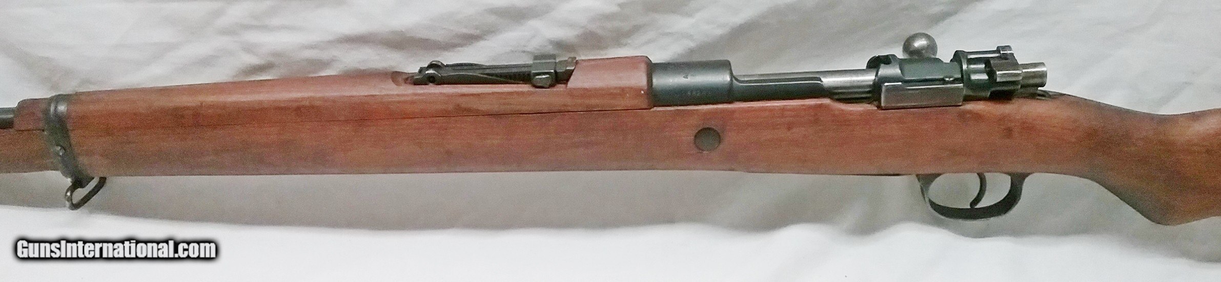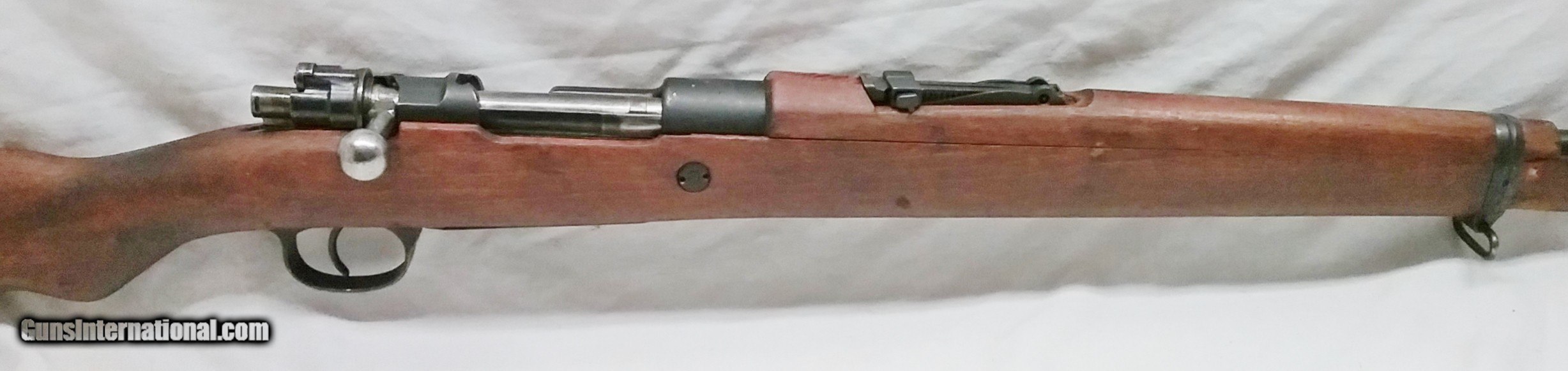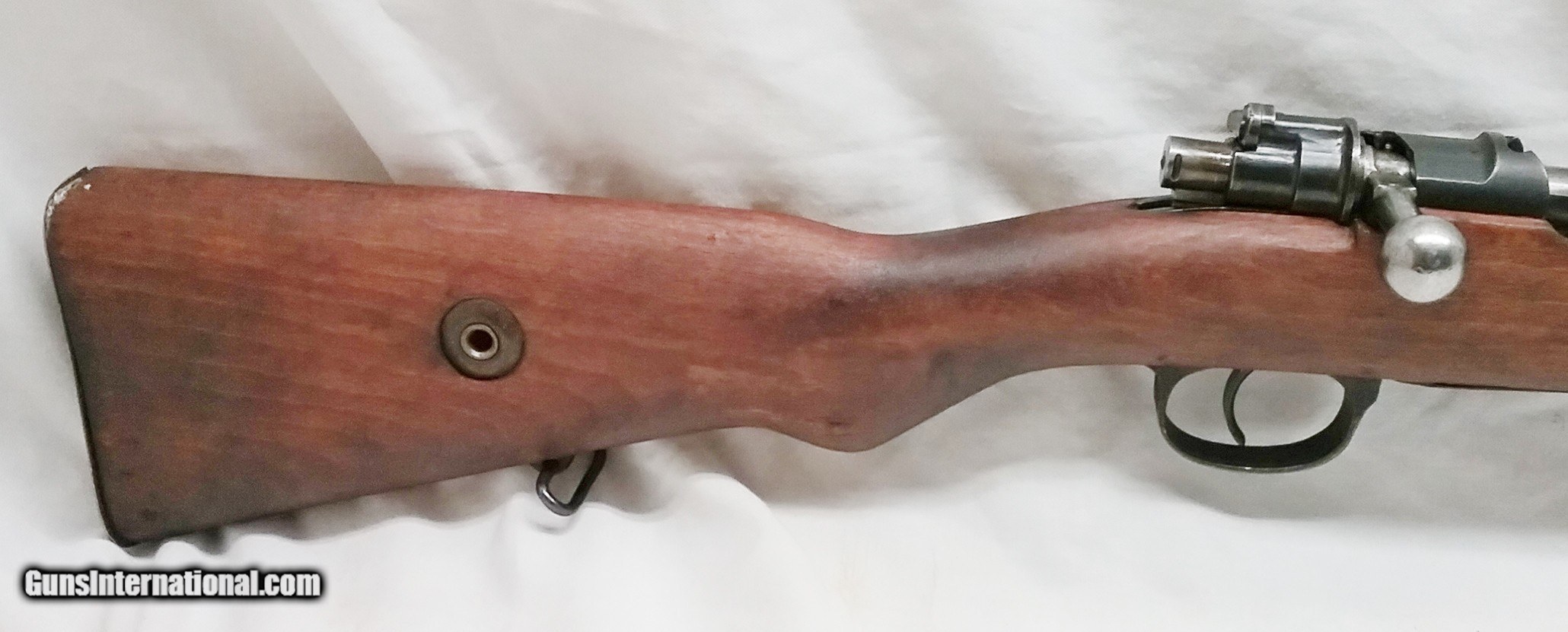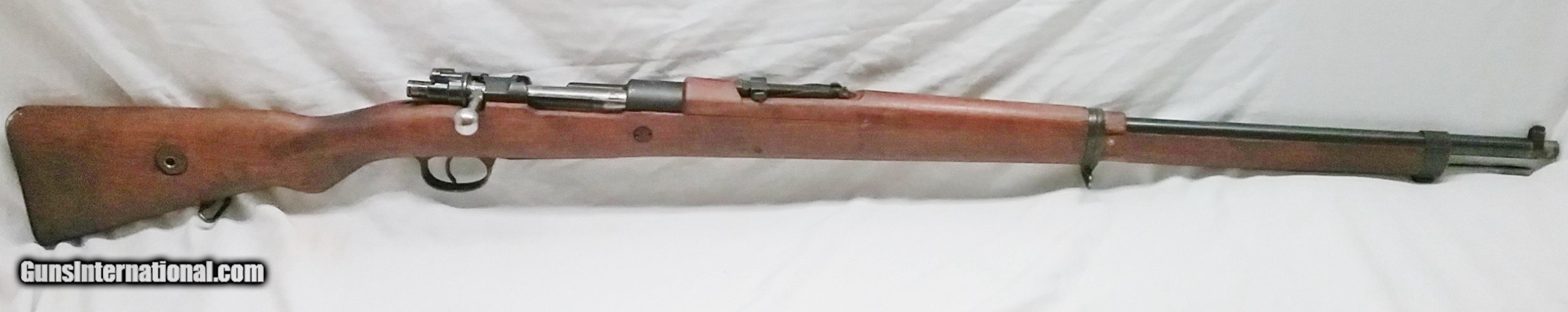 Description: This 1944 dated 8mm Turkish Mauser Model 1938 has a 29-1/4” blued tapered round barrel mounted with an adjustable rear sight and a drift-adjustable front sight. The top of the receiver is stamped with arsenal markings and the date of manufacture. The bore is very good. The Select Hardwood stock with metal buttplate and handguard are in good condition with the exception of some scratches and usage dents. The gun features a bayonet lug, a bolt disassembly tool on the buttstock and a cleaning rod. The numbers on this gun are non-matching. Length of pull is 13”, overall length is 49”, weight is 9.4 lbs. Our stock number is #C188. Will ship to any FFL, anywhere in the United States. Buyer pays freight and insurance. SOLD Rifle Caliber: 8x57mm JS Manufacturer: Turkish Mauser Model: 1938 Bore: Rifled Condition: Good Metal Condition: Good Wood Condition: Good Bore Condition: Very Good Barrels: One Barrel Type: Tapered Round Action: Bolt Action Triggers: One Stock: Select Hardwood Fore End: Select Hardwood Butt Pad: Metal LOP: 13 in Finish: Blued Weight: 9.4 lbs Sights: Adjustable Item Location: OR |
