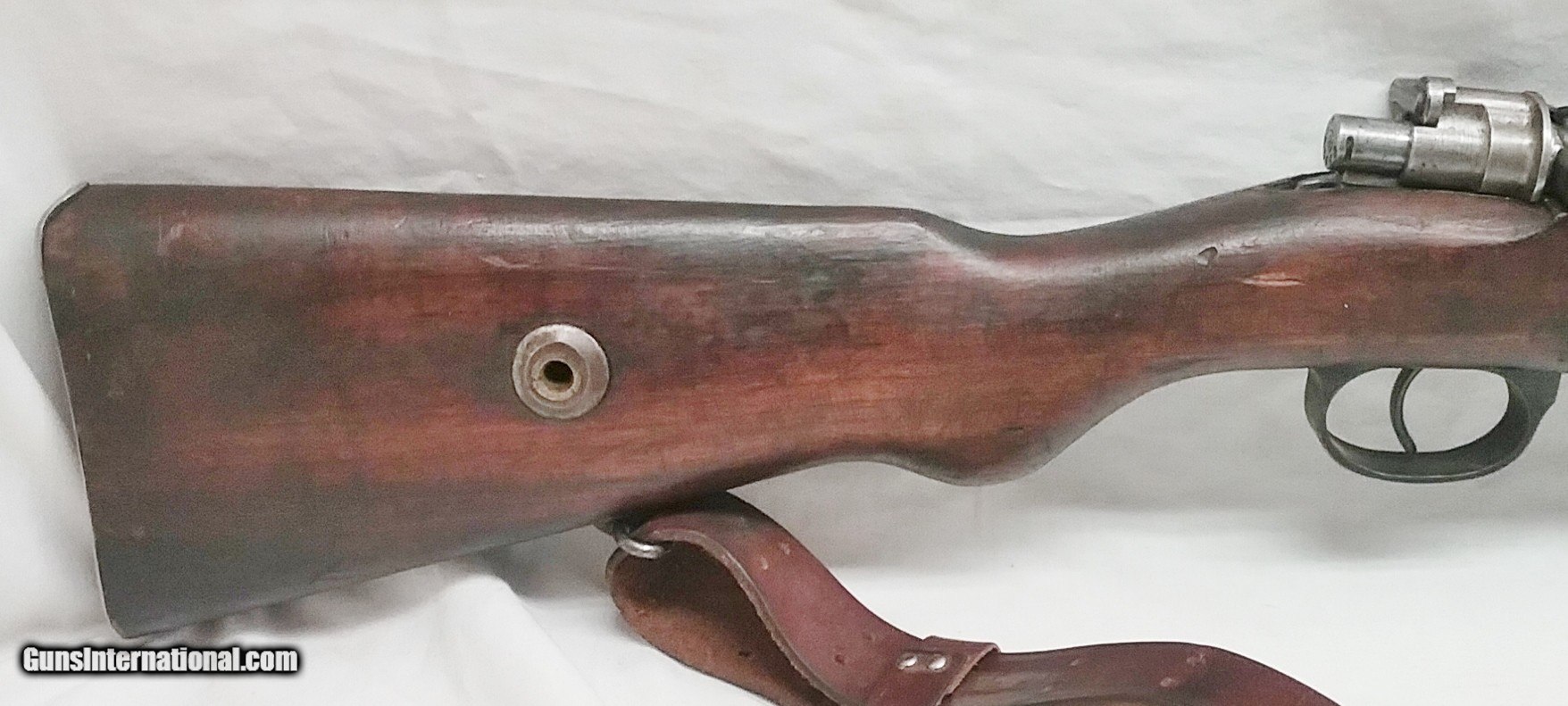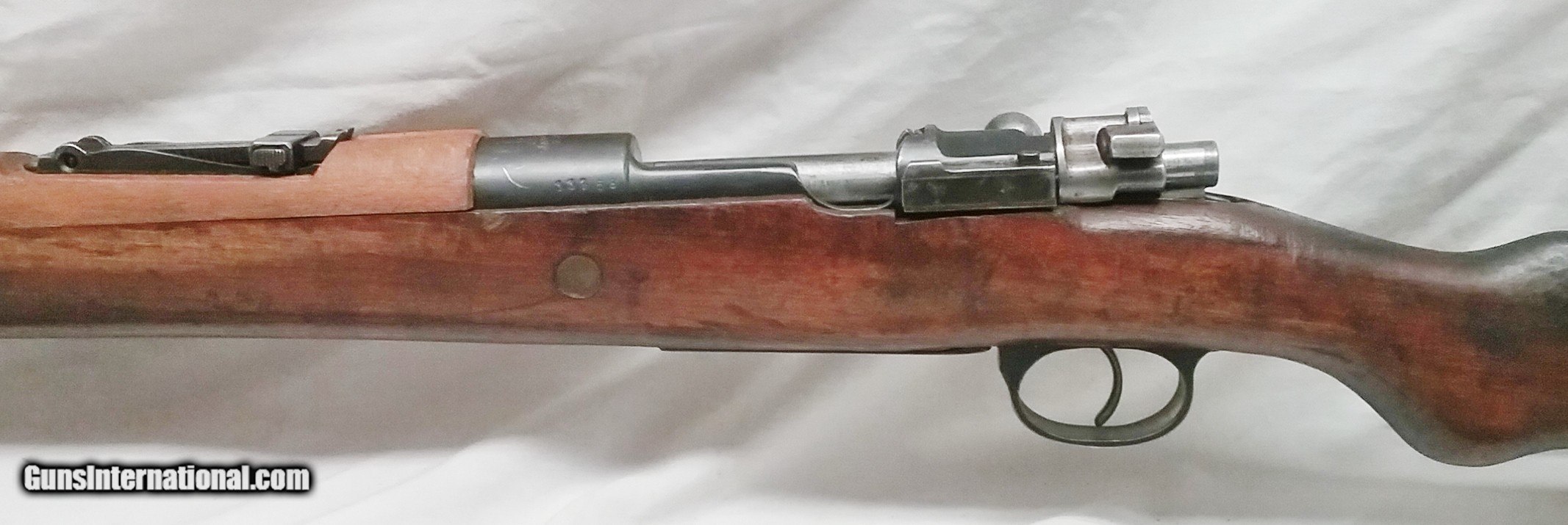 Description: This 1940 dated 8mm Turkish Mauser Model 1938 has a 29-1/4” blued tapered round barrel mounted with an adjustable rear sight and a drift-adjustable front sight. The top of the receiver is stamped with arsenal markings and the date of manufacture. The bore is very good. The Select Hardwood stock with metal buttplate and handguard are in good condition with the exception of some scratches and usage dents. The gun features a bayonet lug, a bolt disassembly tool on the buttstock and a cleaning rod. The numbers on this gun are non-matching. Rifle comes with a bayonet and aftermarket sling. Length of pull is 13”, overall length is 49”, weight is 9.6 lbs. Our stock number is #C194. Will ship to any FFL, anywhere in the United States. Buyer pays freight and insurance. SOLD Rifle Caliber: 8x57mm JS Manufacturer: Turkish Mauser Model: 1938 Bore: Rifled Condition: Good Metal Condition: Good Wood Condition: Good Bore Condition: Very Good Barrels: One Barrel Type: Tapered Round Action: Bolt Action Triggers: One Stock: Select Hardwood Fore End: Select Hardwood Butt Pad: Metal LOP: 13 in Finish: Blued Weight: 9.6 lbs Sights: Adjustable Extras: Read Description Item Location: OR |