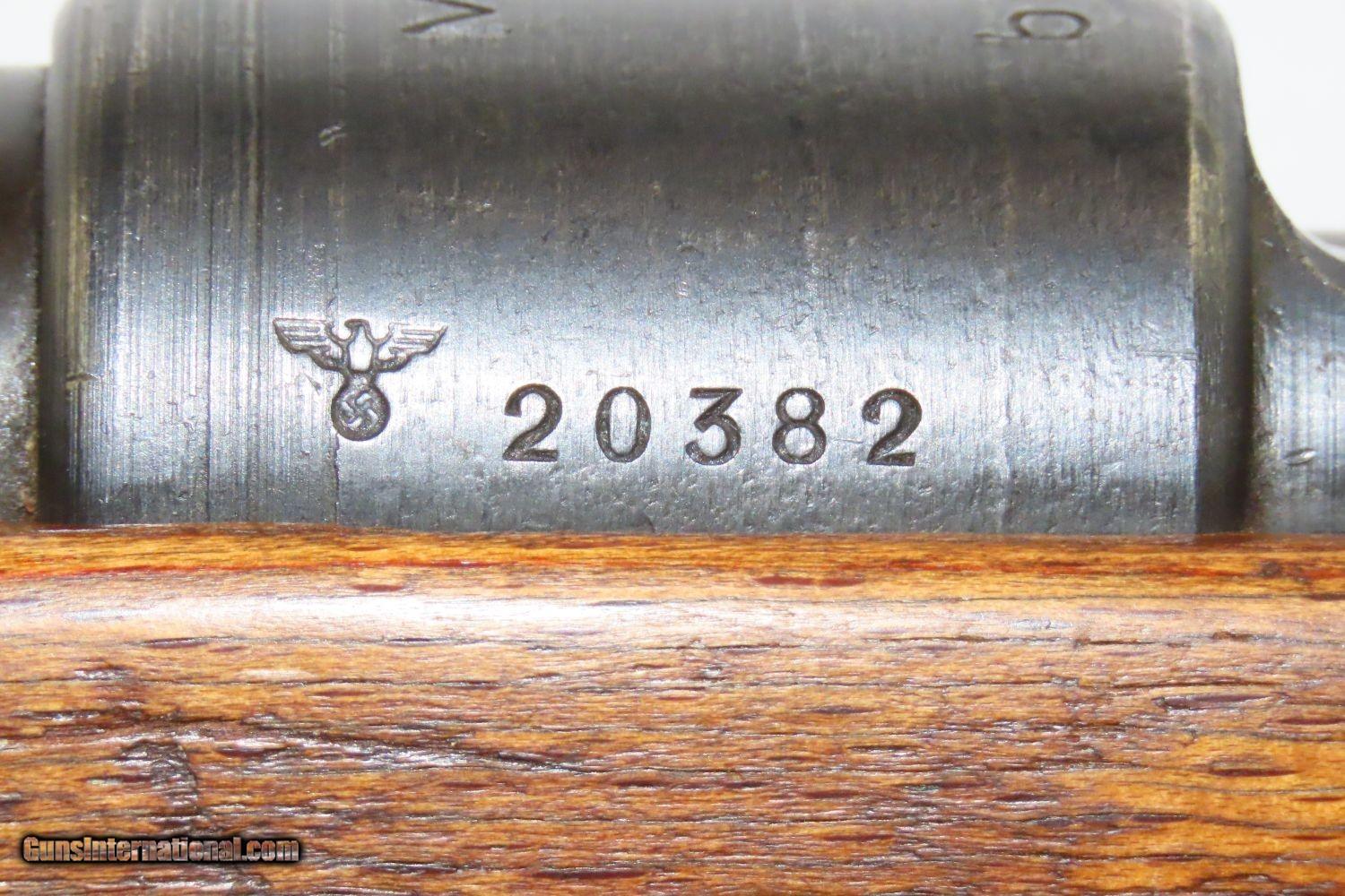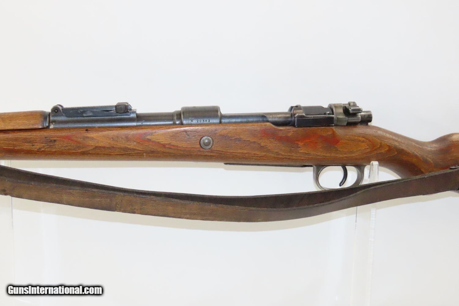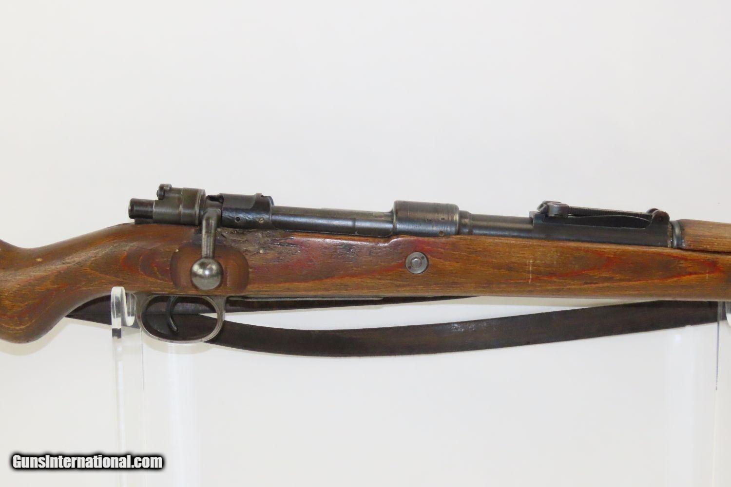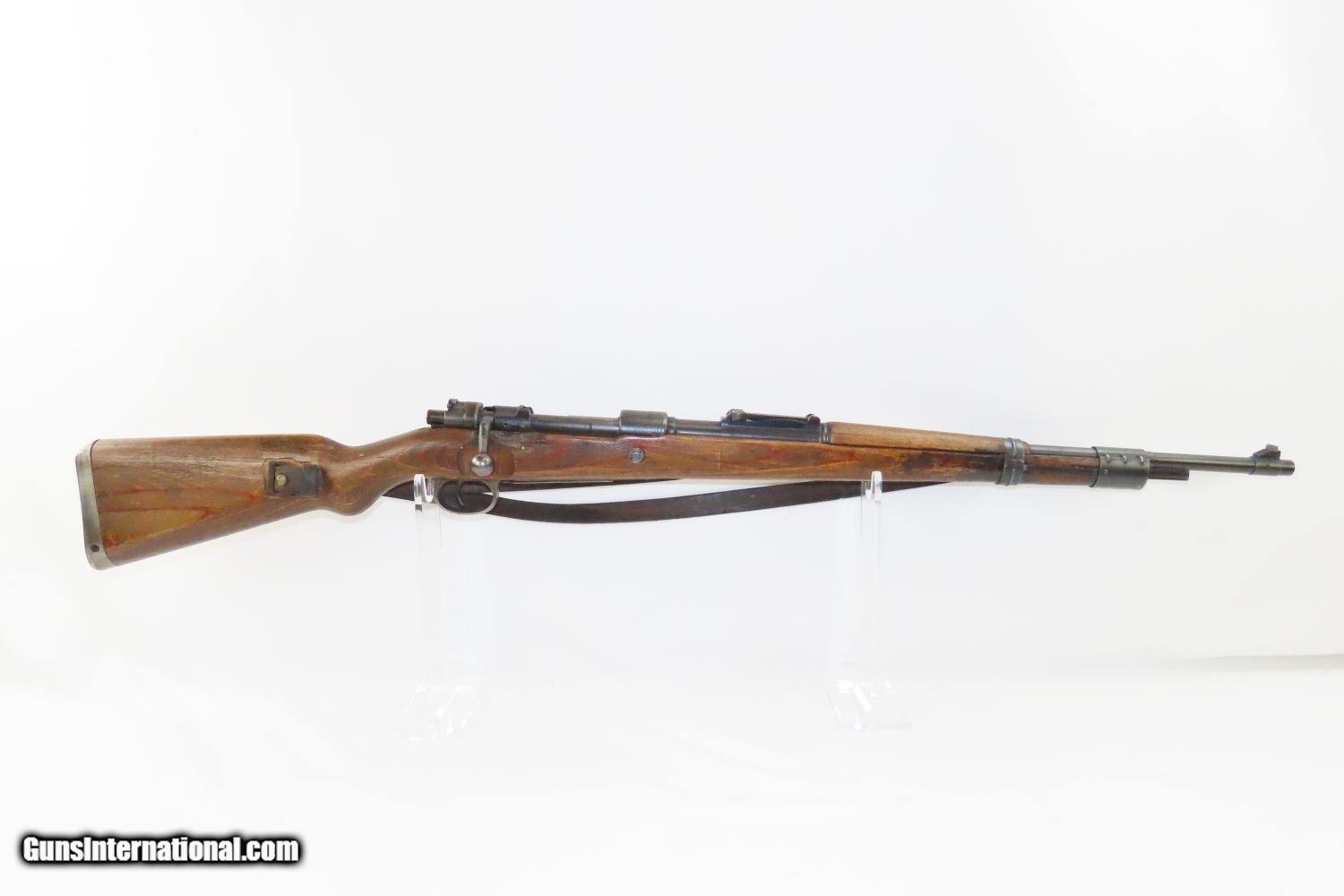 Description: WW II NAZI German Mauser OBERNDORF “byf” Code “45” Model 98 Rifle SCARCE Nazi Germany Third Reich Infantry Rifle! Here we present a C&R Nazi German Mauser Oberndorf “byf” Code “45” Model 98 Rifle manufactured circa 1945. This is a scarce example of a very late World War II K98 rifle that was manufactured at the Mauser factory in Oberndorf. Oberndorf has a long history of producing military small arms. Founded in 1811 by King Frederich the First of Wuerttemberg as an arsenal to produce muskets for his army, the facility was typical of many factories that sprang up during the Industrial Revolution. Mauser acquired the plant in 1871 and was the First Mauser Plant located in Oberndorf, Germany. In 1898 the German Army purchased a Mauser design, the Model 98, which incorporated improvements introduced in earlier models. The weapon was originally chambered for the Patrone 88 and officially entered German service as the Gew. 98 on April 5, 1898. This remains by far the most successful of the Mauser designs, helped by the onset of two world wars that demanded vast numbers of rifles. At the start of World War II, the Führer demanded that the factory produce 70,000 Mauser rifles a month, and it delivered them with the help of 5,000 forced laborers from across Europe. The overall condition is very good. Nice blue finish. The action is strong and tight. The bore is bright with nice rifling. The stock is mostly smooth and solid, however, there is a rather crudely rejoined duffel cut under the front sling bar. There is a waffenamt behind the sling slot on the right side of the stock. This example includes a leather sling. This firearm is classified as a Curio & Relic. Barrel is 24 inches. Caliber: 7.92mm Mauser Overall condition as seen in photos. Very Fast. Very Safe. FREE SHIPPING. Will need to be sent to your local FFL or C&R licensee. This firearm is classified as a Curio & Relic. Guaranteed AUTHENTIC & Includes CERTIFICATE OF AUTHENTICITY. ancestryguns $1945 #201655 SOLD Curio/Relic: Yes |