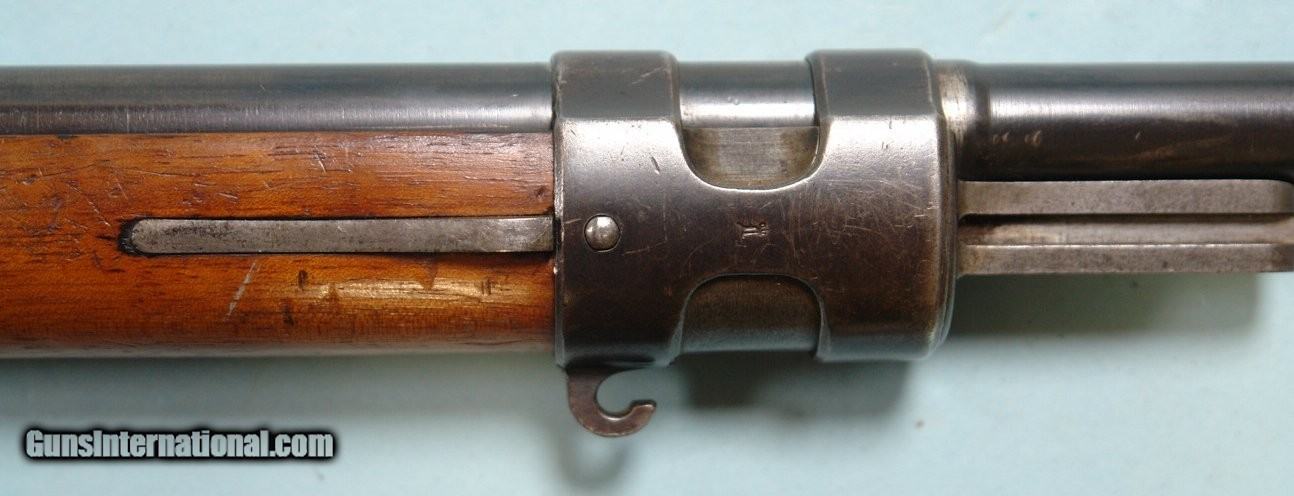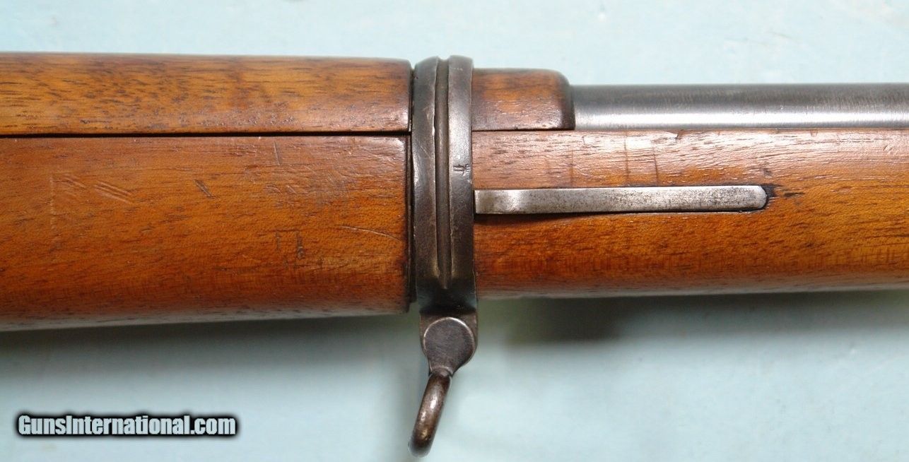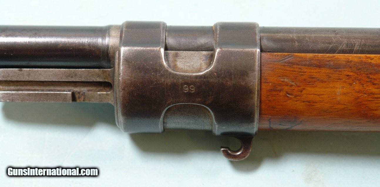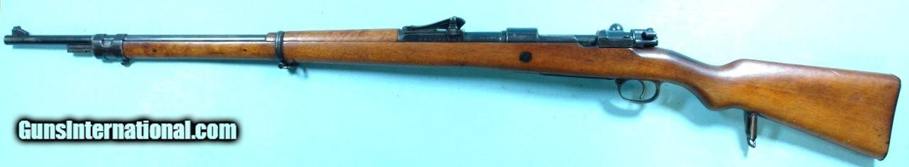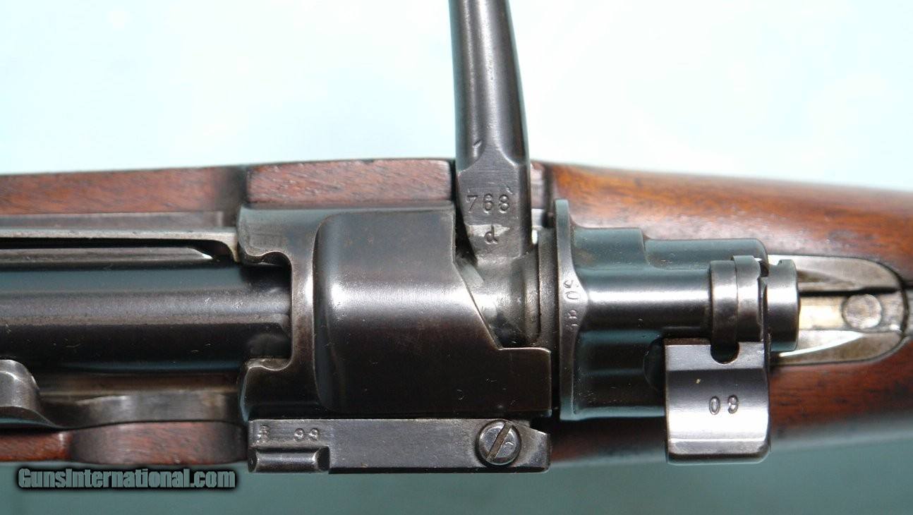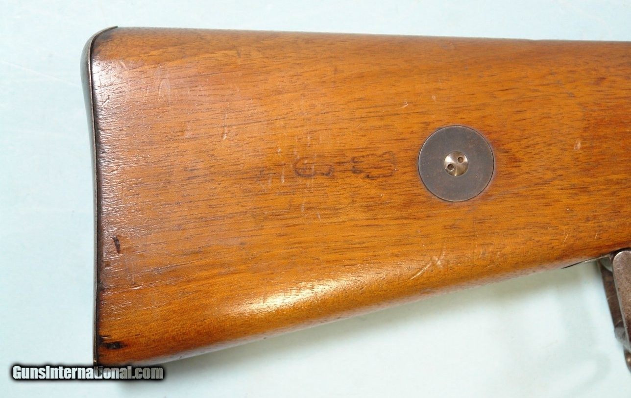 Description: 32420- WW1 WWI IMPERIAL GERMAN SPANDAU MAUSER GEW 98 8MM INFANTRY RIFLE DATED 1911. 30” barrel with original front and rear sights. All matching except bolt. Original sling swivels. Receiver stamped “CROWN/SPANDAU/1911” and barrel stamped with Ordnance proofs at left breech. Has most of the blue and wood finish with light to moderate wear. Perfect working order and brilliant bore with near mint rifling. $2200. Curio/Relic: Yes Rifle Caliber: 7.92x57mm Mauser Price: $2,200.00 Contact Seller |