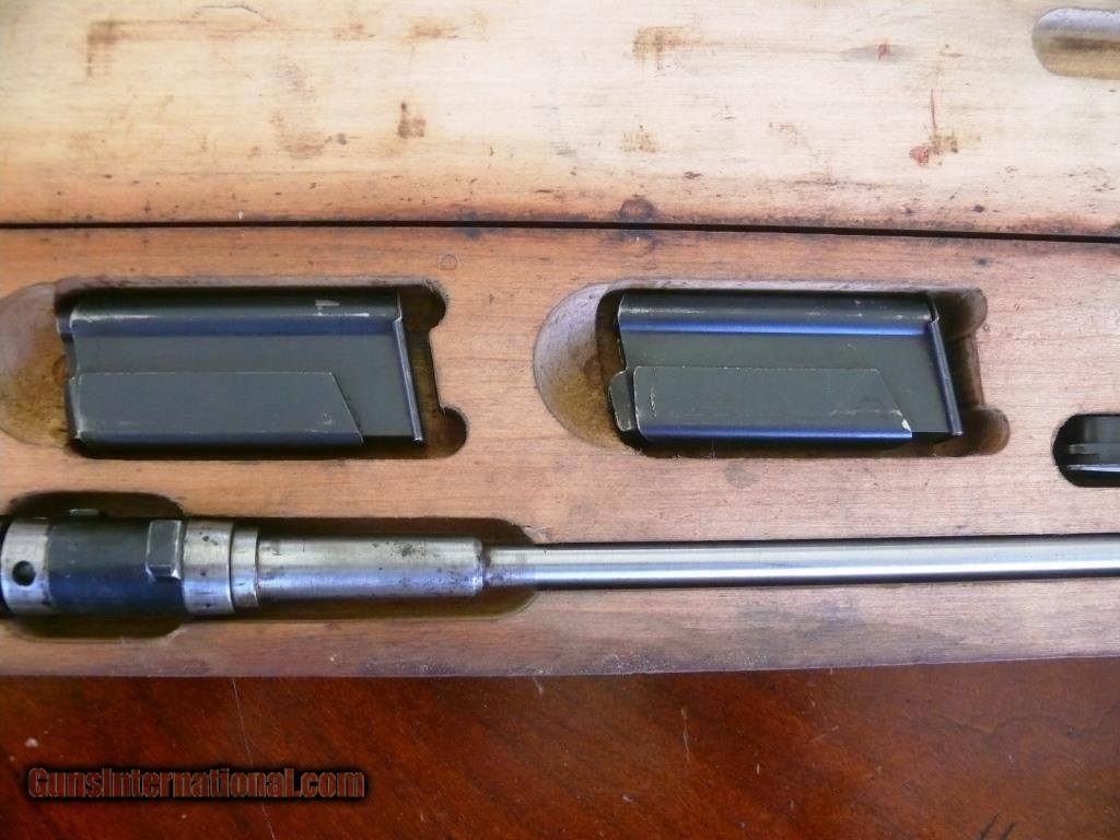 Description: Sold to Erik // These are pretty scarce; I have seen these on the internet but this is the first one I have ever personally encountered. I believe they were adopted in 1937. Erma was the manufacturer. This one is complete and features its original case, with Erma markings and Eagle over 77 acceptance stamp. It has two magazines and the installation tool. Bore on the barrel insert is also incredibly good. I have installed it in the 98K I have just listed and it’s a pretty neat system. Must ship to an FFL. Cards add 3%. Shipping is included in the price. If you have any questions, please let me know. Strength and Honor! SOLD |
