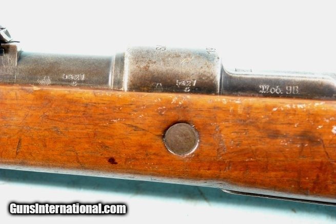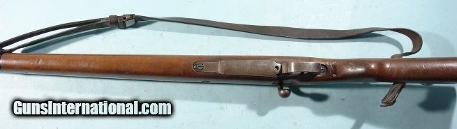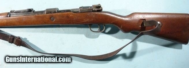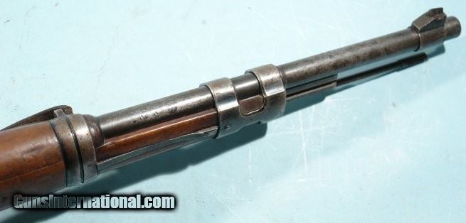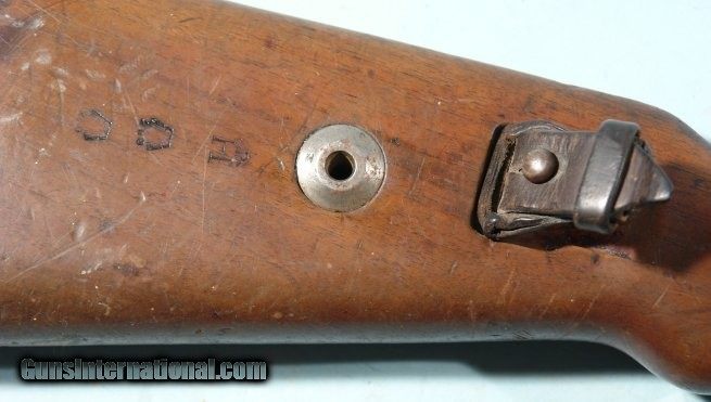 Description: WW2 GERMAN MAUSER ERMA K98K S/27 1936 DATE 8MM INFANTRY CARBINE. All original bring back with no import marks. All matching except bolt which is a wartime replacement with matching finish. Early Nazi era Army Eagle ordnance stamps on receiver, barrel and stock. Original sling. Very good overall with original blue mixed with patina on metal. Stock with the original finish and moderate wear. Three nice ordnance stamps on right side of butt. Minor very hard to see old war period hairline at wrist behind trigger guard. Working order and very good bore. SOLD Curio/Relic: Yes Rifle Caliber: 7.92x57mm Mauser |