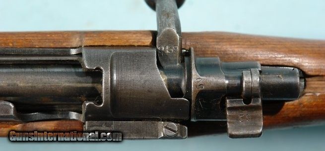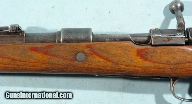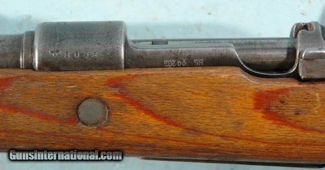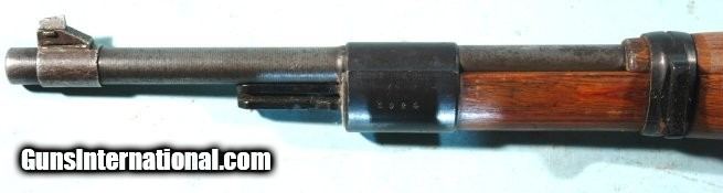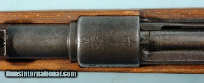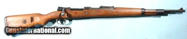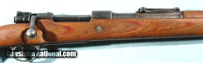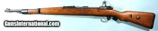 Description: WW2 GERMAN MAUSER J. P. SAUER PRODUCTION K98K CE/44 8MM INFANTRY CARBINE. All original with matching barrel, receiver and rear sight. Bolt, butt plate and bands not matching original replacements. Matching stock and handguard. Extra nice markings with Nazi Ordnance “EAGLE/SWASTIKA” stamped receiver and barrel. Top of receiver stamped “EAGLE/SWASTIKA/57” and “CE/44”. Stock with Army Ordnance “H” on right butt. Very good plus with the original moderately worn blue and the original finish on the extra nice wood. Working order and very good bore that will clean even better. SOLD Curio/Relic: Yes Rifle Caliber: 7.92x57mm Mauser |