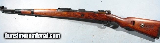 Description: WW2 GERMAN MAUSER K98a DOU/44 RIFLE. 8mm Mauser. All matching import in superior condition as arsenal refurbished. Matching stock and hand guard with stock having matching number. Bolt and safety with matching serial numbers to the gun. 99% military finish overall. Perfect working order and excellent bore. SOLD Curio/Relic: Yes |