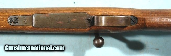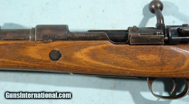 Description: WW2 GERMAN MAUSER K98K BYF/44 8X57MM INFANTRY CARBINE. All original and matching except bolt and sight leaf. Matching stock and handguard with stock number matching gun. Even the bands and butt plate with matching numbers to go gun. Trigger guard/floorplate assembly also matching. Receiver stamped correctly “BYF/44” with Nazi Waffenampt “EAGLE/135” on right side and Nazi Army Ordnance “EAGLE” on right. Barrel with ordnance proofs at top of breech. Fine to excellent with much original blue and the original finish on the stock and forend. Perfect working order and very good bore with good rifling with some minor light frosting. D-Day year dated K98K. Handsome example. SOLD Curio/Relic: Yes Rifle Caliber: 7.92x57mm Mauser |