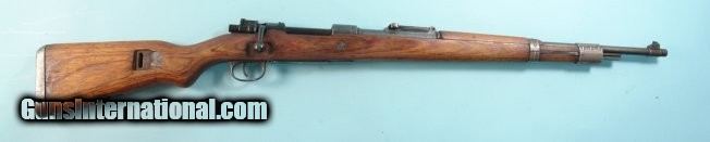 Description: WW2 GERMAN MAUSER K98K BYF/45 8MM INFANTRY RIFLE. All original and complete. All matching except bolt assembly, bolt release and floor plate which are original replacements. Nazi proofs with post war over stamps but eagles still clearly visible. Receiver stamped “BYF/45”. Excellent with considerable original blue and all the stock finish. Working order and very good bore with dried grease that needs cleaning. SOLD Curio/Relic: Yes Rifle Caliber: 7.92x57mm Mauser |