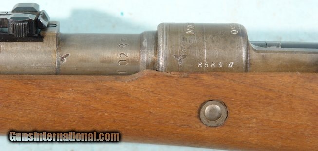 Description: WW2 GERMAN MAUSER K98K BYF/45 8X57MM INFANTRY CARBINE. All original and matching except bolt which is original replacement. Excellent Nazi markings including Ordnance Waffenampts on receiver and one German Army “EAGLE/SWASTIKA” stamp as well as one on the barrel. Receiver stamped “BYF 45”. Matching stock and handguard with the original finish. Original blue with light wear. Working order and very good bore that will clean even better. Very nice looking original WW2 K98K. SOLD Curio/Relic: Yes Rifle Caliber: 7.92x57mm Mauser |