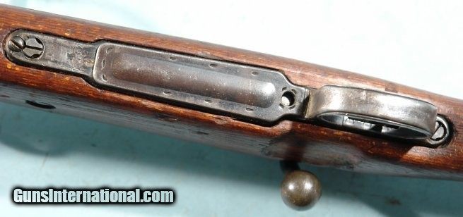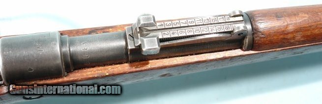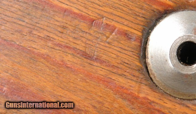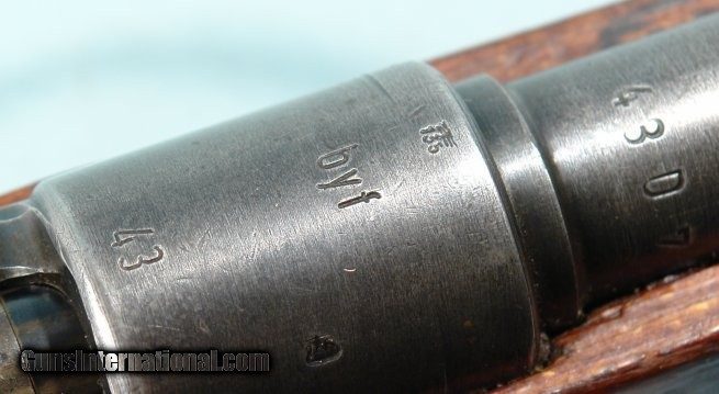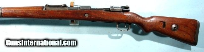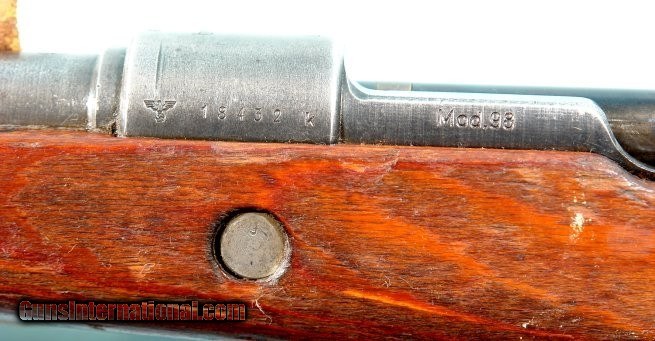 Description: WW2 GERMAN MAUSER MODEL K98K BYF/43 CARBINE. All matching and original in excellent condition. Barrel, receiver and bolt year date stamped “43”. Receiver, both barrel bands, floor plate and rear sight with matching serial numbers as well. Has all correct Nazi Ordnance Waffenamts (Eagle/135, Eagle/Swastika) on receiver, barrel and floor plate. Receiver also stamped on right side of ring with a small ordnance stamp of what appears to be a U Boat emerging from under water. Early import stamp on underside of barrel near muzzle. Stock with all the finish and excellent “NAZI EAGLE/H” Ordnance stamp on right side of butt stock. Fine condition with much original blue with light wear. Stock with all the original finish. Working order and excellent bore. SOLD Curio/Relic: Yes Rifle Caliber: 7.92x57mm Mauser |