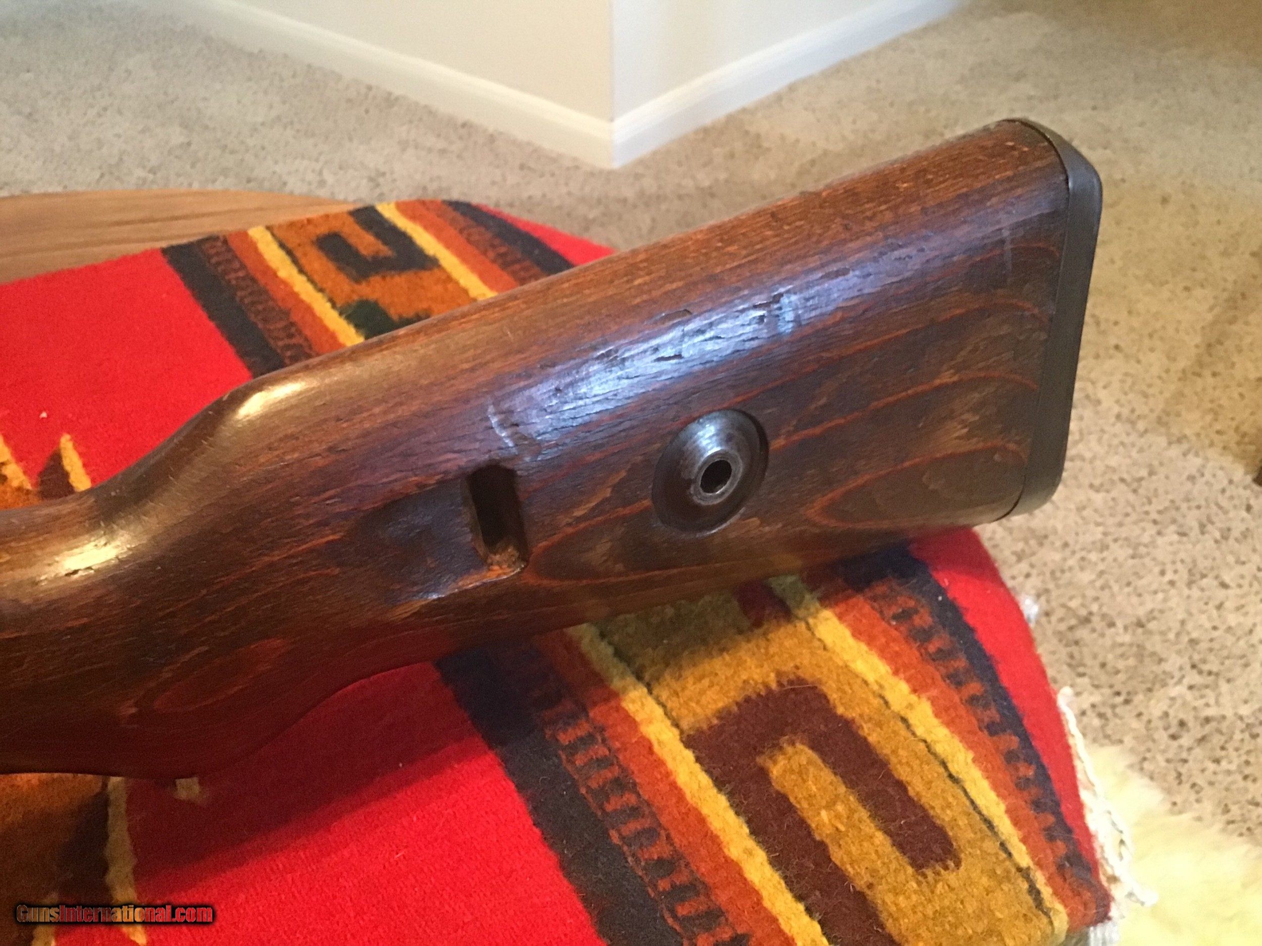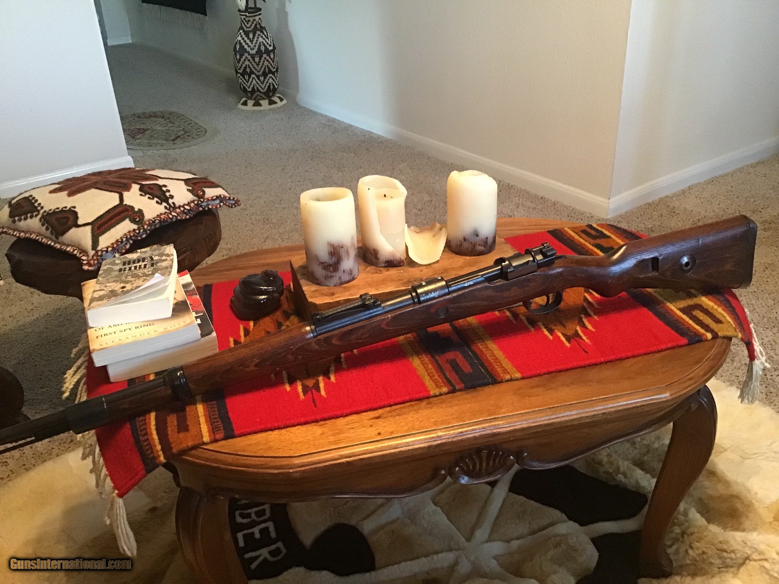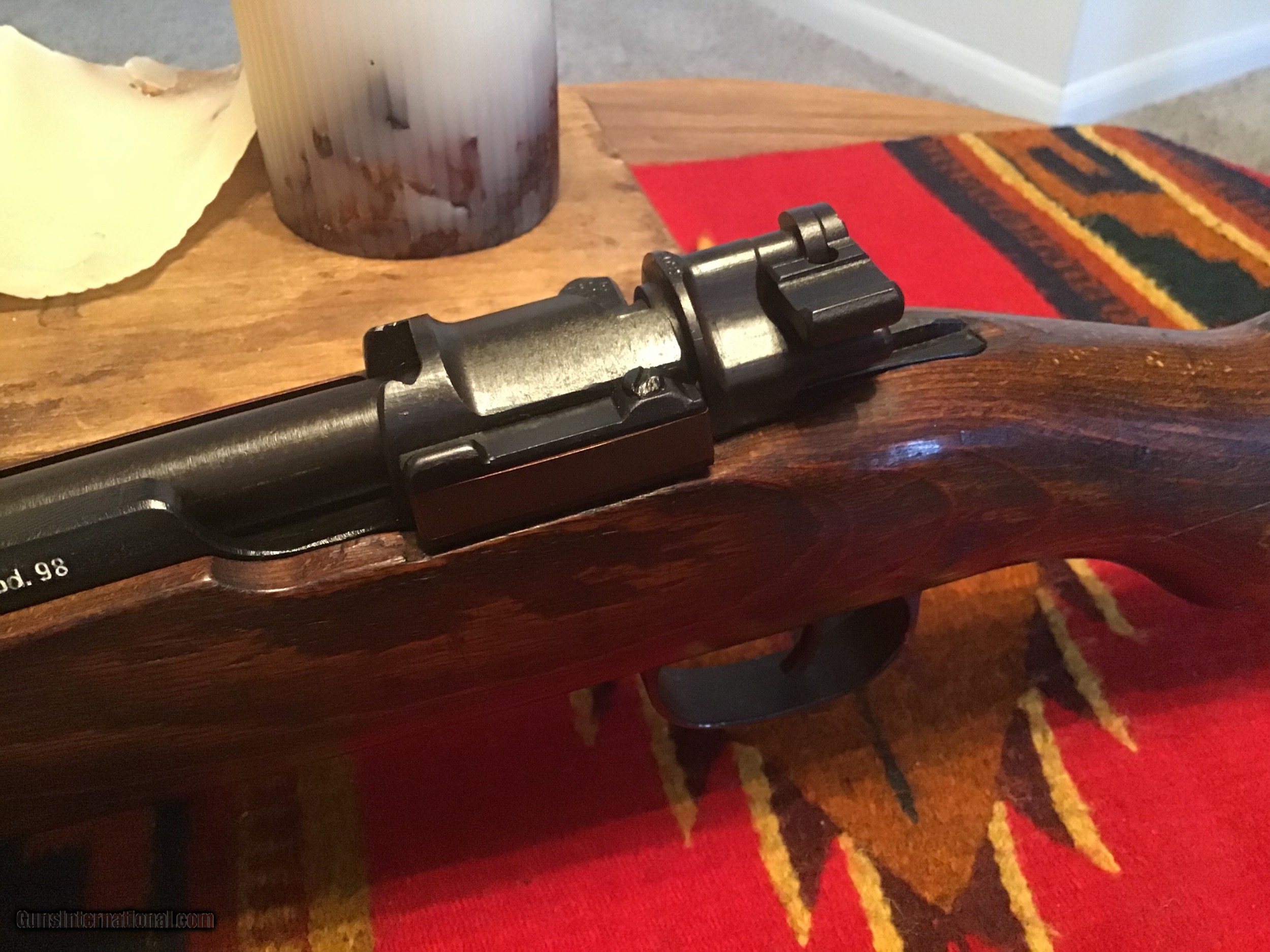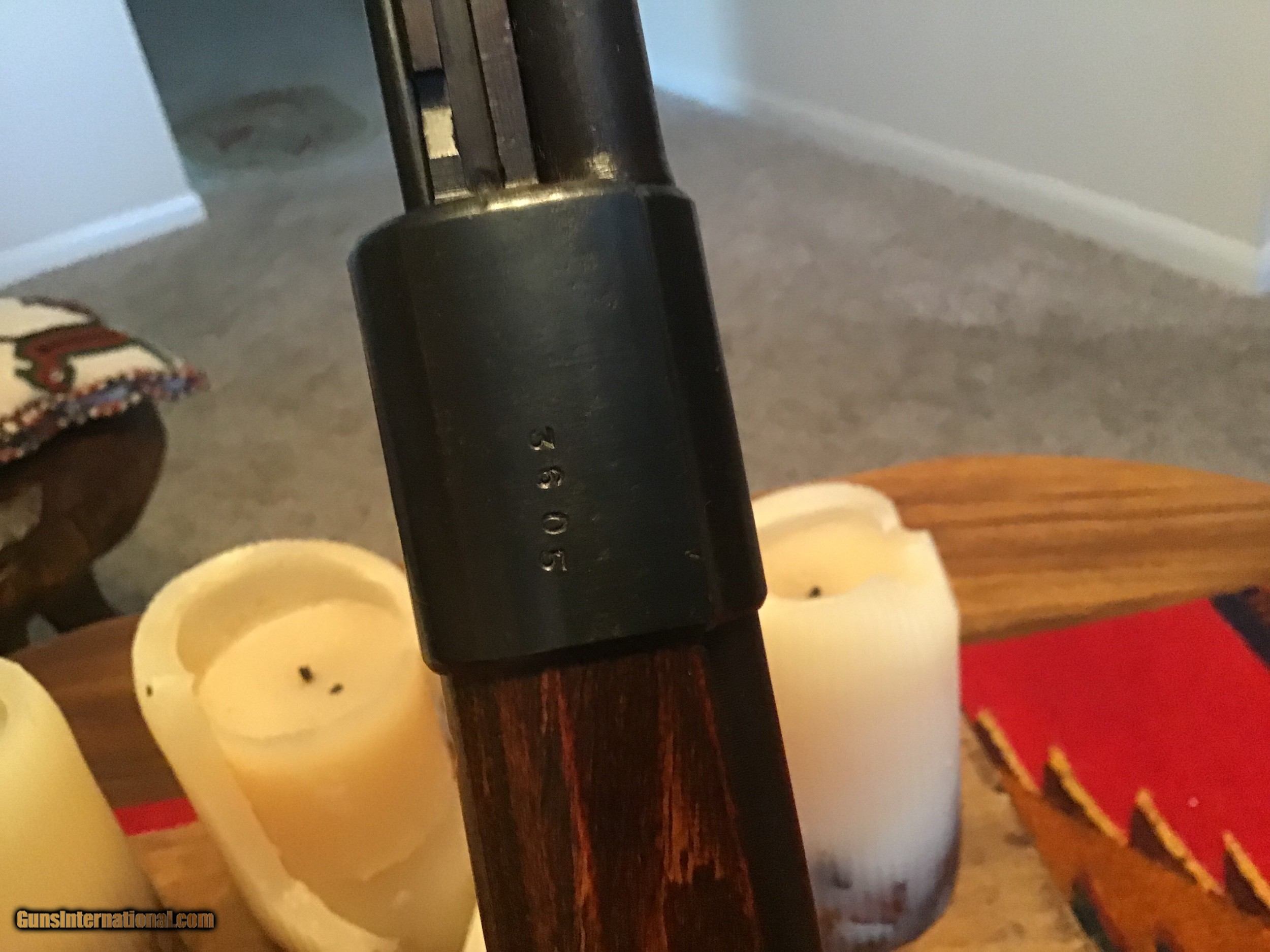 Description: SOLD!!! Very fine, near excellent condition WWII German 98k Mauser rifle in 8mm Mauser (7.92 x 57) caliber that has the “bnz 43” code on the receiver for production by Steyr in 1943. Rifle is not import marked and has all matching serial numbers except the ejector box and band spring. Metal finish is excellent original blue, but has some scattered very light pinprick pitting. Bore is very good with strong rifling, mostly bright with some very light pitting. Stock has original finish and shows some normal handling marks. Complete with cleaning rod and front sight hood. A really nice WW2 German Steyr 98k. Most likely vet bring back. SOLD Curio/Relic: Yes |