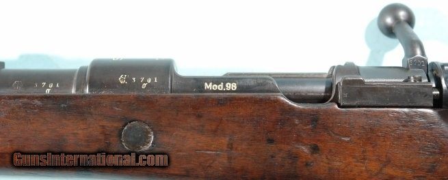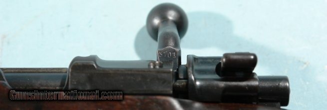 Description: WW2 MAUSER K98K S/42, 1937 DATE 8MM CARBINE. All original and matching metal parts including bolt and butt plate. Stock with near number appears original and has correct butt plate numbered to gun. Extra fine example with the original finish overall and nice bore and in perfect working order. Has all correct and clearly struck Nazi Ordnance Waffenampt stamps on metal and stock. Superior example. No import marks. SOLD Curio/Relic: Yes Rifle Caliber: 7.92x57mm Mauser |