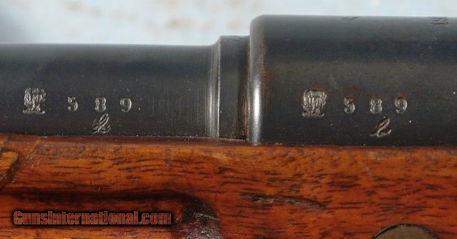 Description: WW2 MAUSER KARABINER DATED 1920 GEW 98 S28 K98B STYLE 8MM MILITARY PRE-WW2 RIFLE. Three digit serial number with "b" suffix and all matching so probably the 10,589th rifle made in that series. These blank receivers (although stamped "1920" on top ring) are considered 98b style(originals by Simson) transition post WW1-preWW2 with "S28" stamps on various parts including under barrel. Stock also numbered to gun under wood. These rifles were produced using leftover Gew98 parts so has Imperial German markings but no KAR98 or Gew98 markings on receiver. Stock matching with various crown over "O" and Weimar republic eagles as well as Nazi eagle over "Hr1"(reworked in Hanover is what that stamp means). Stock unsanded so markings crisp as are all metal parts and barrel so no refinish. Supposedly 30,000 produced. NO import marks. Lower stock forend with duffle-cut for GI bringback purposes. Handguard above glued lengthwise with what appears as same glue to reattach forend for dufflecut repair(properly done so no shortening of wood). Rare S28 marked transition 1920 marked rifle probably reworked about 1927-28. Probably made by Berlin-Karlsruher Industrie-Werk, A.G. (Formerly DWM). SOLD Curio/Relic: Yes |