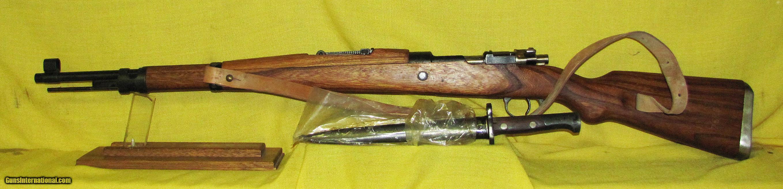 Description: YUGO (MITCHELL ARMS) M48 IN 8MM CAL., WITH 24" BARREL. COLOR BLUE. CONDITION 98%. SERIAL NUMBER M25593. YUGO (MAUSER) (MITCHELL ARMS) MODEL M48, MIRROR BORE, WOOD IS EXCELLENT, 98% FACTORY FINISH, ALL MATCHING SERIAL NUMBERS, COMES WITH BAYONET AND SHEATH, SLING. OUR NEW STOCK # D32082. SOLD |