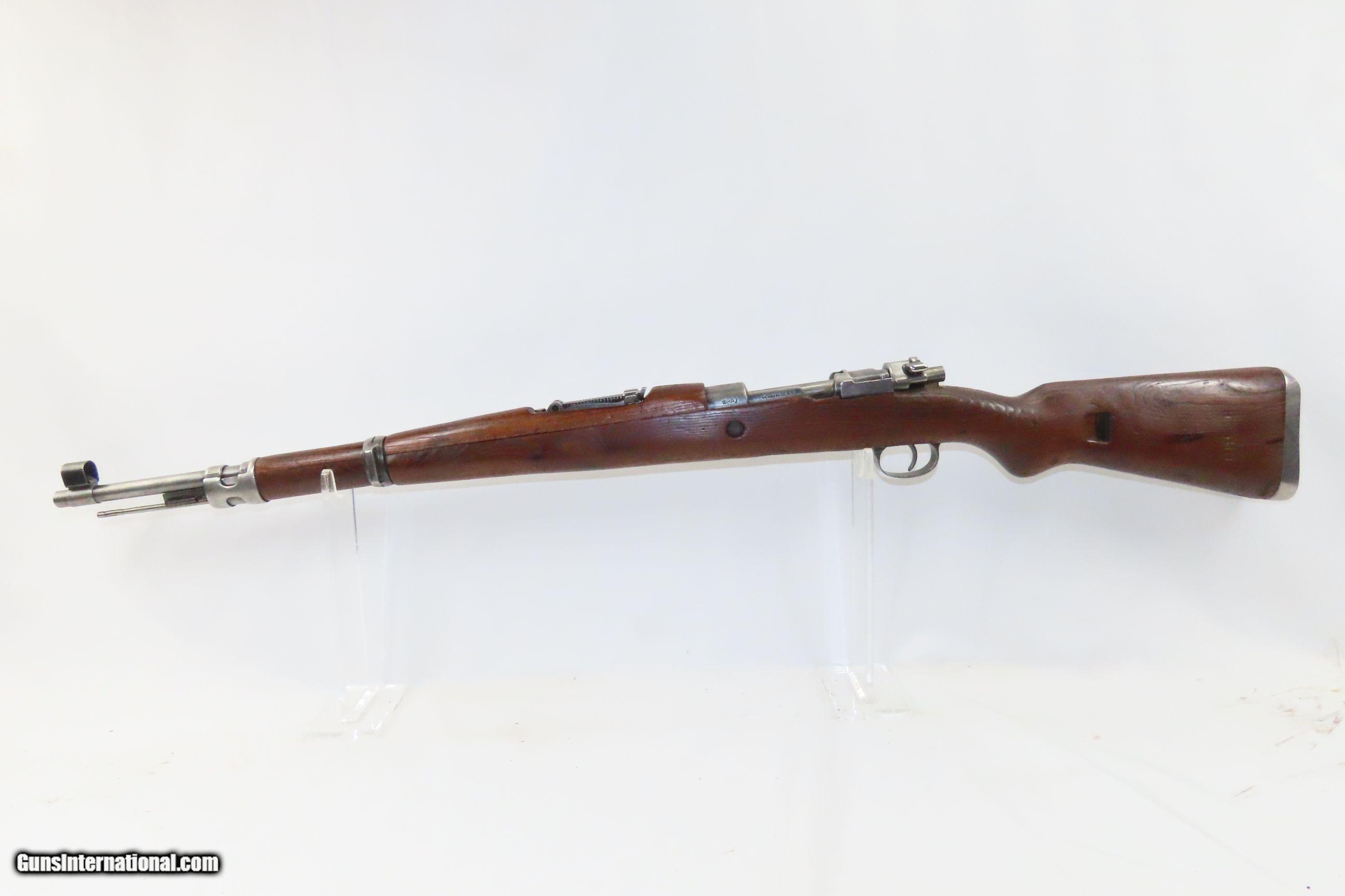 Description: YUGOSLAVIAN Post-World War II Mauser Model 48 7.92mm C&R MILITARY Rifle Yugoslav Version of the KARABINER 98k Rifle Here we present a C&R Yugoslavian Mauser Model 48 Rifle, made circa 1950 to 1952 at Preduzece 44, or “factory” 44. This rifle is a post-World War II Yugoslav version of the German Karabiner 98k designed by Mauser. It was the standard service rifle of the Yugoslav People's Army from the early 1950s until its replacement by the Zastava M59/66, a licensed copy of the Soviet SKS semi- automatic carbine, in the early 1960s. During World War II, Germany had absorbed the Yugoslavian government’s inventory of Mauser rifles into its military and had stripped the Military Technical Institute, Kragujevac (the forerunner to the Zastava Factory Complex) of most useable machines for use elsewhere in the Third Reich’s armaments industry. After the war’s conclusion, Yugoslavia had effectively no remaining capacity to build complete rifles and the technology to do so had to be redeveloped. Consequently, Yugoslavia acquired the necessary machines to manufacture rifles outside their country, most notably with captured German machines in the Soviet Union. Based on prototyping that began in 1948, in 1950 the Model 48 Mauser was finalized and adopted for service. The Model 48 remained in production for only 3 years before being replaced by a simplified version known as the Model 48A with a total manufacturing run of 238,515 between 1950-52. This example has a very clear Yugoslavian Crest stamped on the receiver. The overall condition is good. The action is strong. A layer of cosmoline, for preservation, is present in the chamber, thus will cause resistance to the bolt until cleaned. The bore is in good shape and has slightly dimmed. Solid stock overall. “PW ARMS” import marked. Pre-import numbers match. This firearm is classified as a Curio & Relic. Barrel is 24 inches. Caliber: 7.92mm Mauser Overall condition as seen in photos. Very Fast. Very Safe. FREE SHIPPING. Will need to be sent to your local FFL or C&R Licensee. This firearm is classified as a Curio & Relic. Guaranteed AUTHENTIC & Includes CERTIFICATE OF AUTHENTICITY. ancestryguns $1050 #230446 SOLD Curio/Relic: Yes |