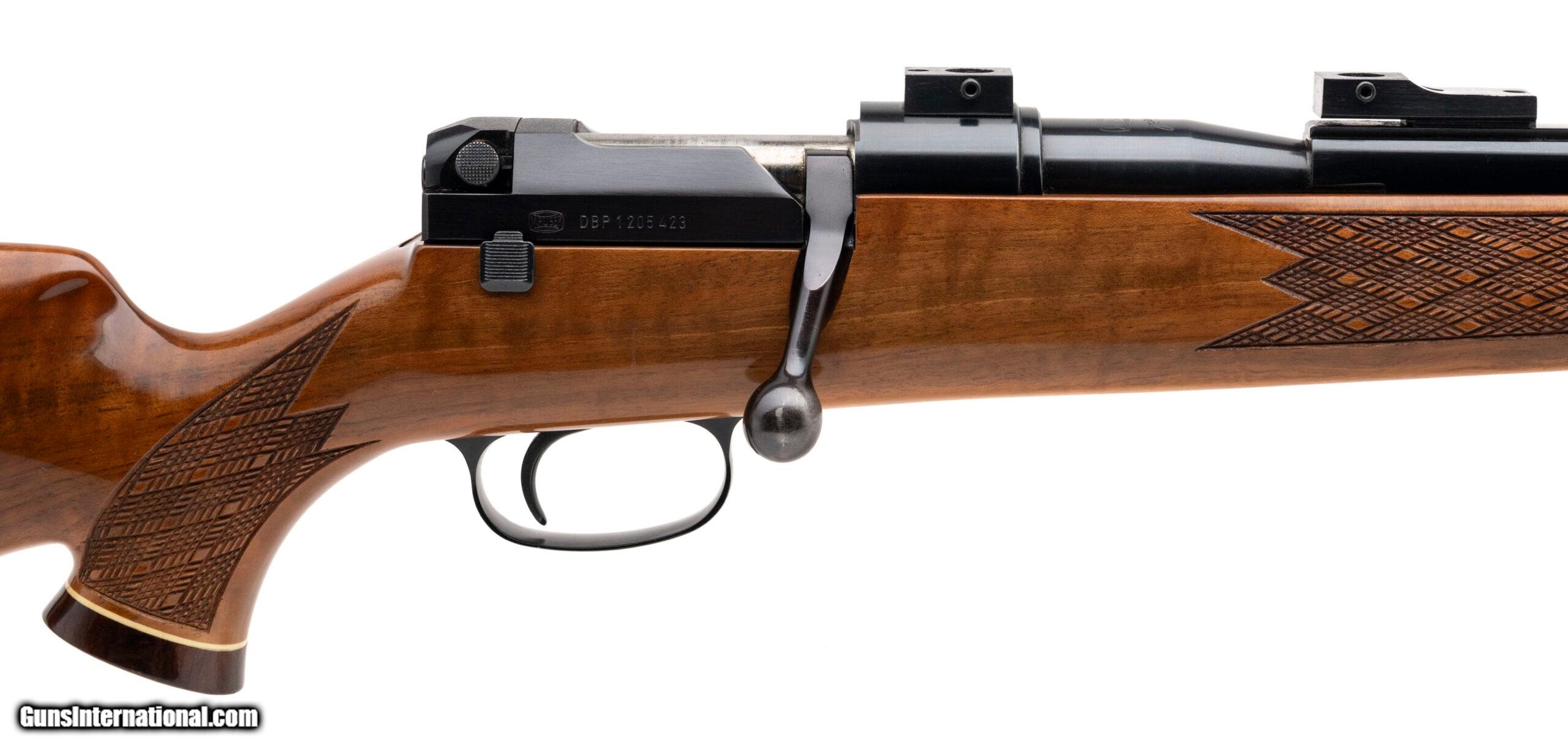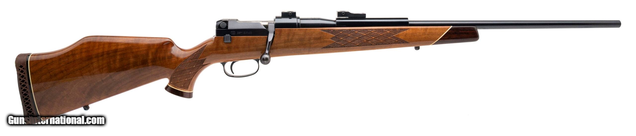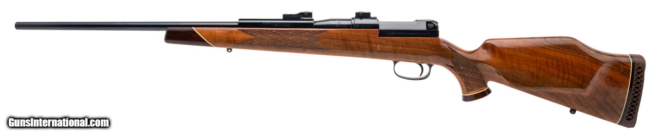 Description: "SN: G31671 made circa 1960’s. 25-06 bolt action rifle with a 24" round barrel, Conetrol scope bases and deluxe high gloss checkered walnut stock with skip line checkering and rosewood forend tip and grip cap. Unique telescoping bolt action with sliding bolt carriage and a push button safety overall in very good condition with an excellent bore. Consignment. Price: $1,995.00 Contact Seller |
