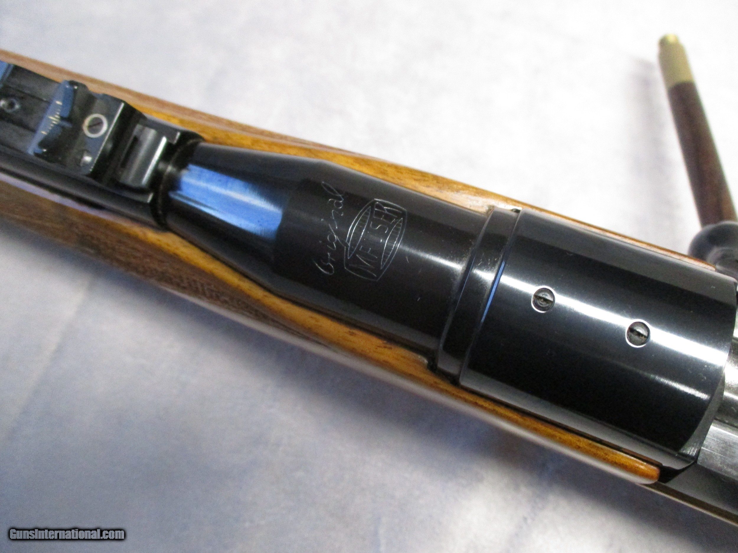 Description: This is one of Mauser’s many post-war bolt action rifles. The Model 66 is unique compared to most Mauser rifles. On the 66, the bolt sits in a carriage of sorts. By operating the bolt, the carriage moves along a set of rails built onto the top, rear end of the receiver, much in the same way the slide on a pistol moves with respect to the frame. In other words, the Model 66 uses a telescopic action. This system gives the 66 a butter-smooth bolt operation that is unequalled anywhere else. The 66 retains the majority of is finish, which is a very high gloss blue. The bore is in fantastic condition with clear rifling. There are a few signs of wear on this rifle. One is the minor wear on the right side of the rear sight base, which has bit of bluing loss and some minor pitting. The second is that the recoil pad has dried out over time and will likely need replacement. The third is some minor wear to the wood on the left-hand side of the comb of the stock. These are shown in the pictures. The stock itself is a Monte Carlo style with white line spacers. The recoil pad is a brown ventilated style. The 66 is equipped with iron sights but is drilled and tapped on the ring for the rear scope ring. The rear sight base is grooved to fit the front scope ring. Obviously, the Model 66 uses a very specific set of scope rings. This Model 66 is chambered for the famous and long-popular .30-06 Springfield, which has been used to hunt everything from coyote to brown bear. This rifle would be suitable for a wide variety of game and can be very useful for hunting in open plains where the shooter is able to take advantage of the .30-06’s long range capabilities. SOLD Rifle Caliber: .30-06 Springfield Manufacturer: Mauser Werke Model: Model 66 Serial Number: G27793 Bore: Rifled Condition: Used, Minor Wear Barrel Type: Round Action: Bolt Action Triggers: Single Stock: Monte Carlo style with white-line spacers; Checkered Wood; High-Gloss Finish Fore End: Checkered wood Butt Pad: Ventilated rubber pad LOP: 13.5 inches (343 mm) Finish: Blued Sights: Iron Sights – Ramp Elev. Adj. Rear V-Notch, Blade Front, Sight Radius 18.66 in. (474mm) Extras: Sling |