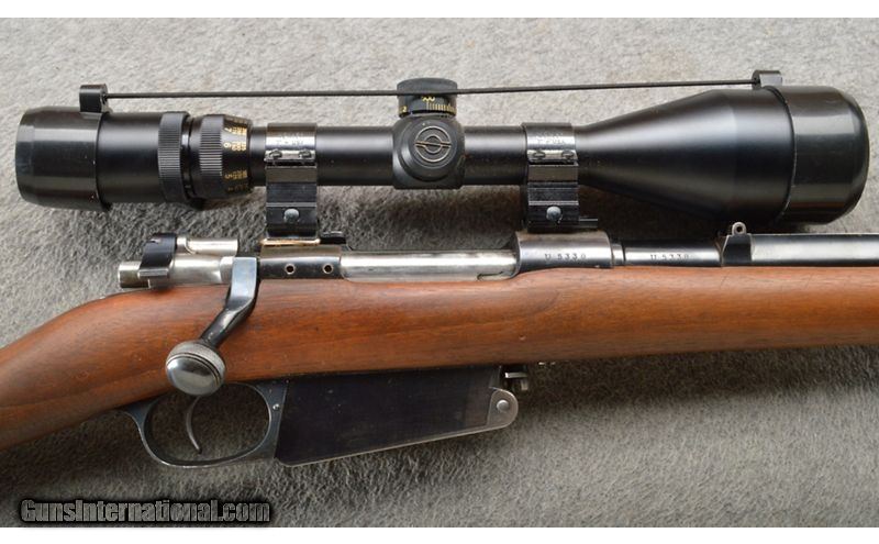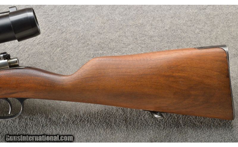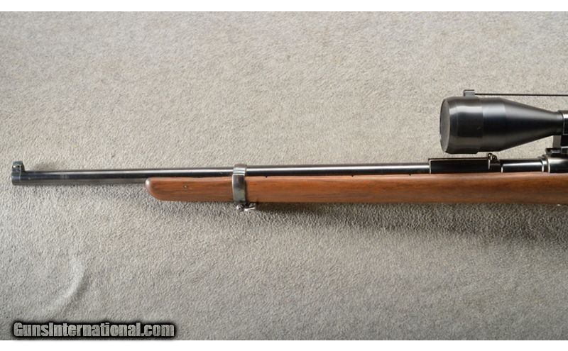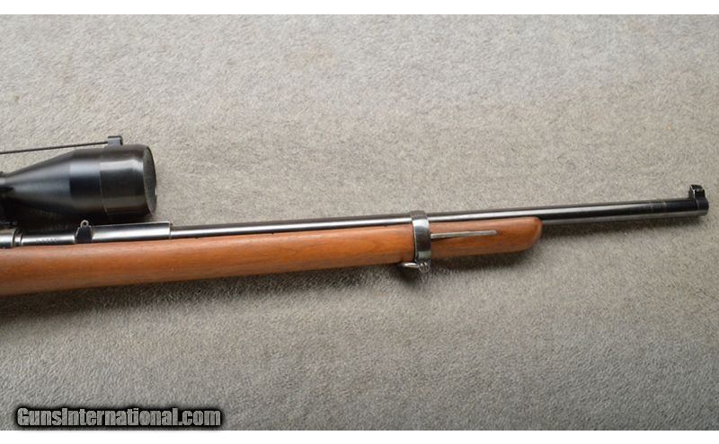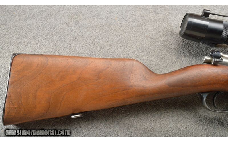 Description: If you are looking for a good deer rifle this would work well for you. The rifle has a 24" barrel with he rear sight internals removed to accommodate the Simmons scope. The upper hand guard and lower stock have been sporterized and look quite nice. The numbers match. The bolt knob has been replaced with a Winchester model 70 bolt knob. 8 mm Mauser SOLD Chambers: Bolt action repeater. Metal Condition: Very good with some field marks. Wood Condition: Excellent most likely refinished. Bore Condition: Very good. Barrels: 24" blue. Triggers: Single. Stock Dimensions: 13" LOP. Butt Pad: Very nice one piece walnut stock with a straight grip and steel butt plate. Weight: 8 Lbs 8 Oz. Sights: Simmons 3.5-10×50 rifle scope. Item Location: Owatonna, MN |