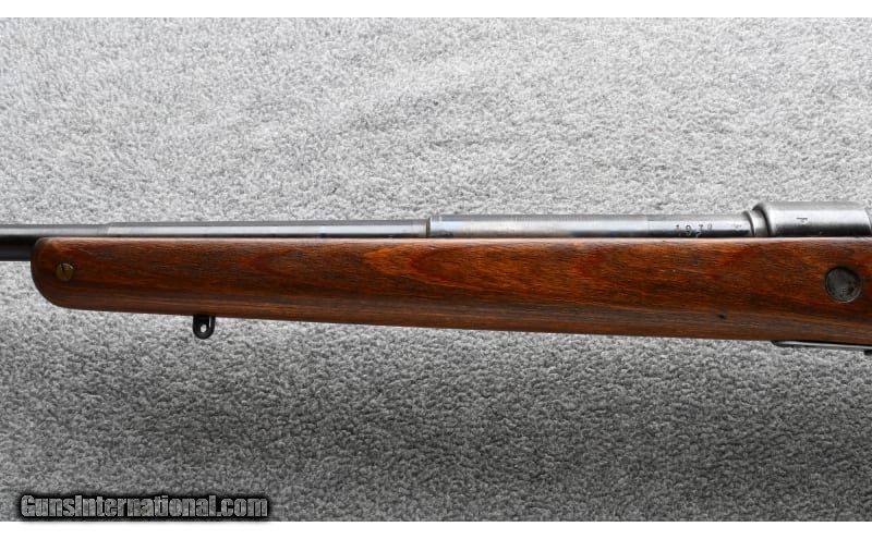 Description: BYF 42 Mauser sporterized with mismatched parts and nice Lyman receiver sight. 8mm Mauser SOLD Chambers: 8mm Mauser in a five round box magazine bolt action rifle Metal Condition: "Fair, shows finish wear and a matte grey patina. Nazi waffenampt stamps are prevalent Wood Condition: "Fair, recontoured buttstock with field marks Bore Condition: "Good, strong rifling Barrels: 24 Triggers: Two stage military Stock Dimensions: 13 1/2" LOP Fore End: Laminate with sling stud Butt Pad: Vented Red Head rubber Weight: 7 Lb 10 Oz Sights: "Ramped blade front, Lyman receiver rear Item Location: Grand Junction, CO |
