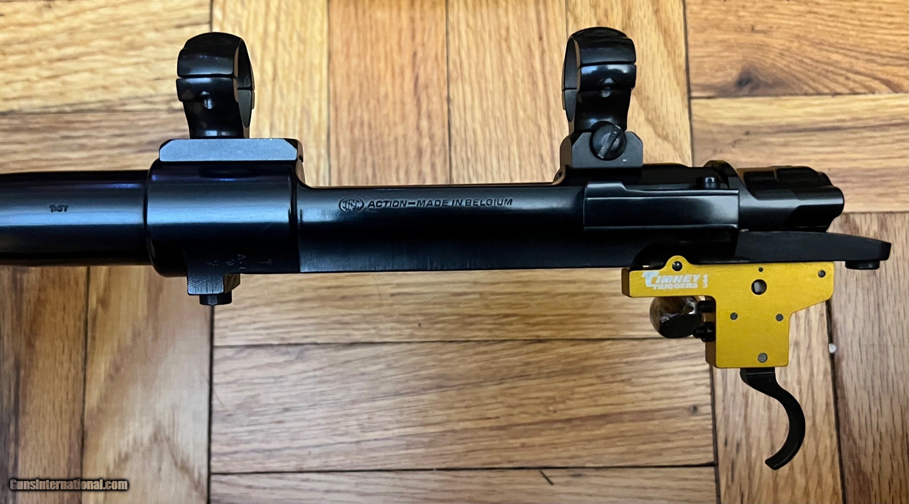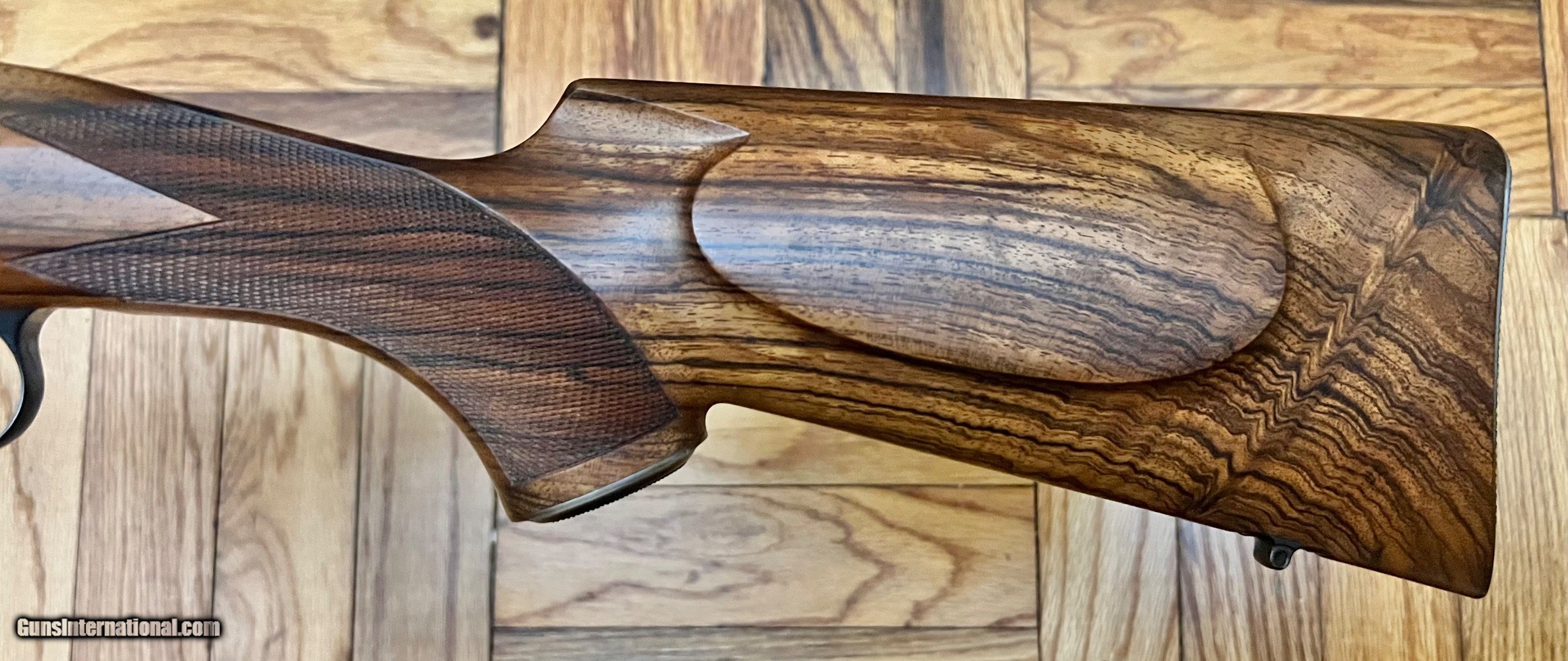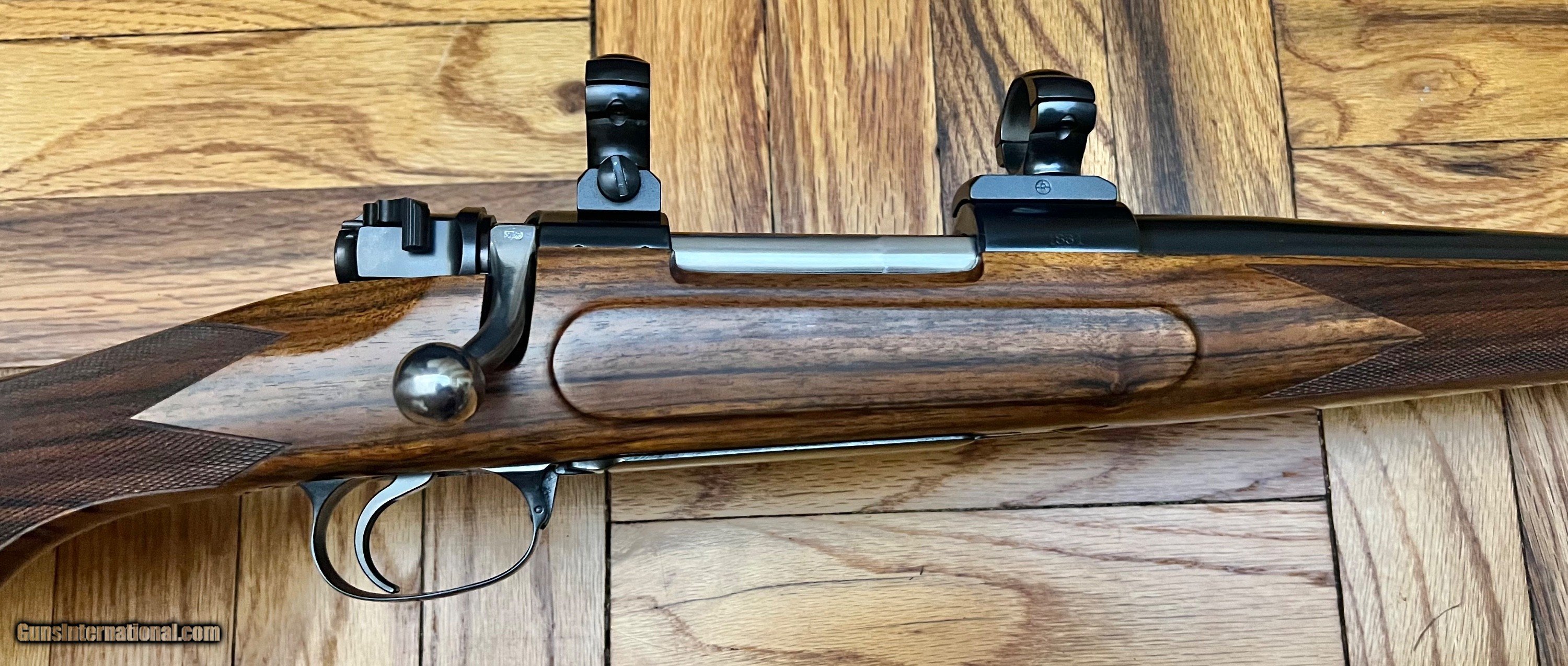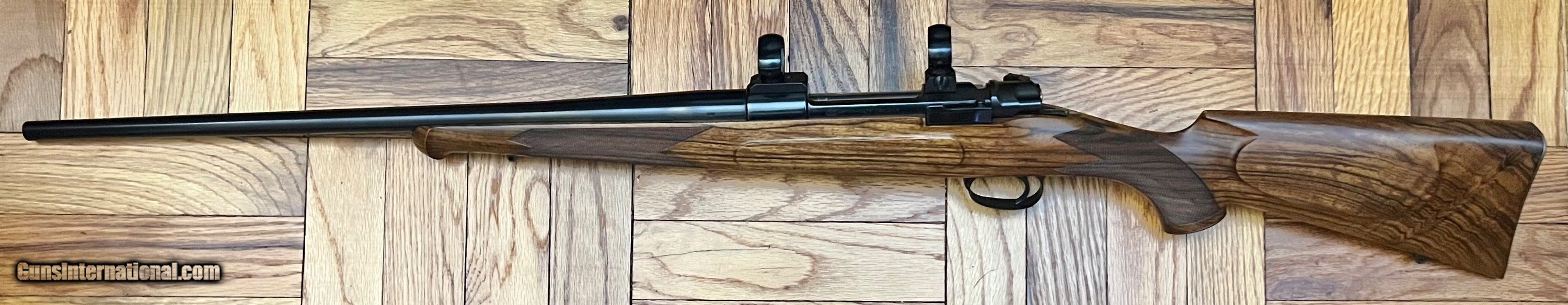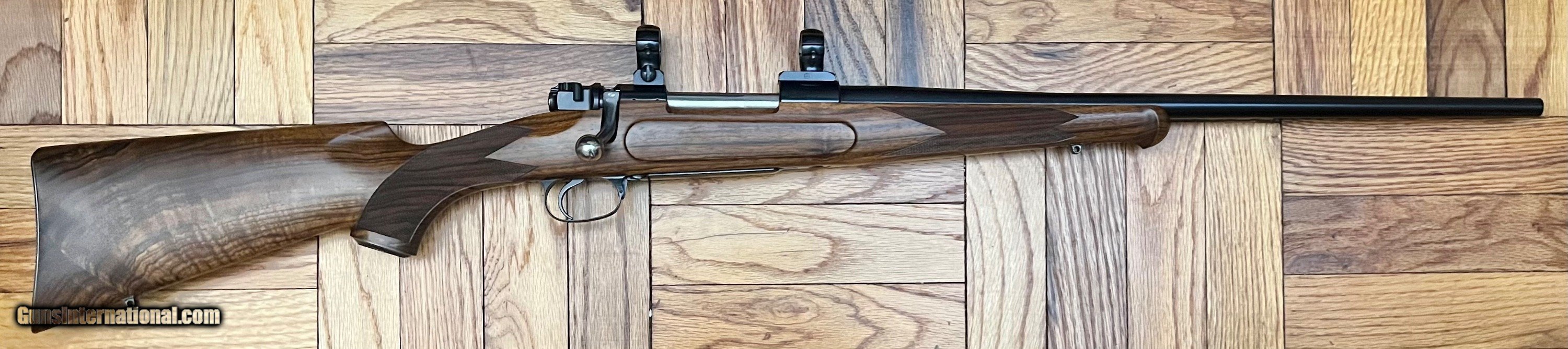 Description: Custom Mauser 7x57mm sporting rifle 21" barrel with excellent bore Redfield scope mounts with 1" rings 1950s production FN commercial large ring Mauser action with hinged floorplate fitted with model 70 style three position safety and Timney featherweight deluxe trigger. Highly figured JP Sauer style sporter stock with Niedner checkered steel buttplate, checkered steel grip cap, and inletted sling swivels. LOP 13 5/8 7lbs 8oz without scope Top notch classic style Mauser custom rifle, I do not know who built this rifle but everything is fitted and finished to the highest standard. Excellent condition overall with few minor handling marks on the wood. Open to reasonable offers. SOLD Curio/Relic: Yes Rifle Caliber: 7x57mm Mauser |