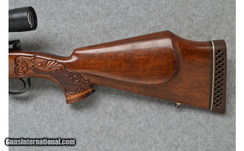 Description: Used. Custom 98 Mauser with beautiful carved stock, and Leupold Vari-X III 3.5x10 Tactical Scope. The .25-06 Caliber is great for most medium sized North American game. A level of custom craftsmanship seldom seen anymore.Rifle marked "Gary L Foster SOLD Caliber Info: .25-06 Rem Metal Condition: Excellent Wood Condition: Excellent Bore Condition: Excellent; Clean & Sharp Barrels: 24" High Gloss Blued Triggers: Grooved, Blued Stock: Monte Carlo Style Custom Carved. Checkered Pistol Grip with Cap Stock Dimensions: LOP: 13 5/8 Fore End: Custom Carved Walnut with Checkering Butt Pad: Brown Rubber Ventilated Type "Pachmayr White Line Weight: 8 lbs. 14 oz. Sights: Leupold Vari-X III 3.5x10 Tactical Scope Extras: Includes Leupold Vari-X III Scope Item Location: Sun Prairie, WI |