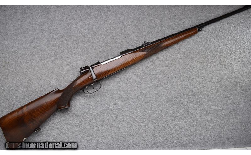 Description: Beautiful custom Mauser with hand checkering and engraving on butter knife bolt handle, floor plate and trigger guard. Caliber is not marked on gun but mic's the same as an 8mm Mauser. Wood is solid but has many dings and scratches from age. Bore is very good, but could use a good cleaning. Barrel has scratches and rest of metal has patinaed with age. Beautiful gun! None SOLD Metal Condition: Very Good Wood Condition: Very Good Bore Condition: Very Good Barrels: 24 Triggers: Double Set Trigger Stock Dimensions: 13 5/8" LOP Fore End: Checkered Walnut Monte Carlo Pistol Grip Stock Butt Pad: Smooth Metal Butt Plate Weight: 6.75 lbs. Sights: Post and Bead Ramp Front Sight - Fixed Notched Rear Item Location: Wheeling |