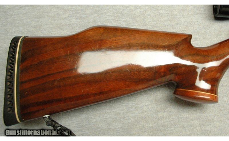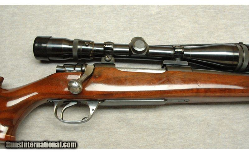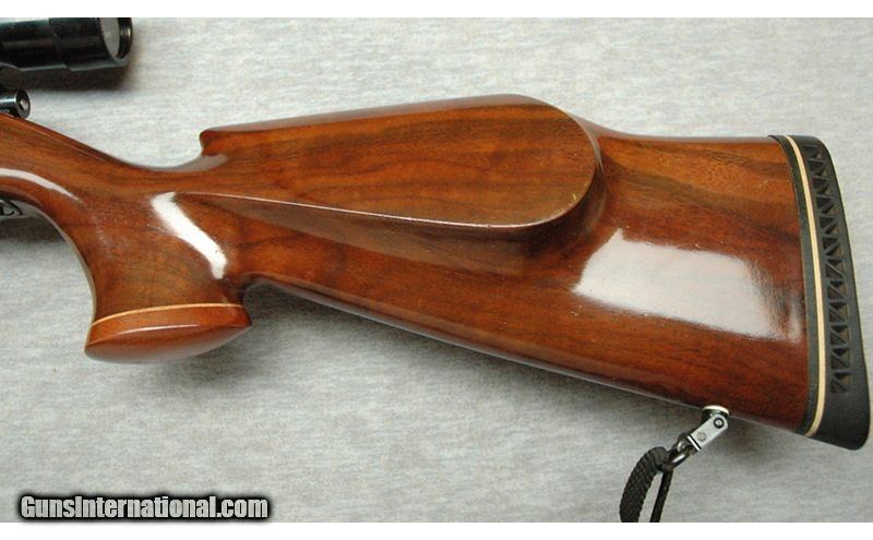 Description: Custom Mauser. Nice early sporterized Mauser example. Chambered for the 6MM Remington which is known for a combination of high velocity, long range, and accuracy. This would be a good choice for medium sized game and varmints. 6mm Remington SOLD Chambers: 6MM Remington Metal Condition: Excellent Wood Condition: Very Good with Handling Marks Bore Condition: Bright Barrels: 24 Inch Triggers: Custom Fore End: Smoth with Cap Butt Pad: Rubber Sights: Weaver 3x9 Scope Item Location: La Vista, NE |