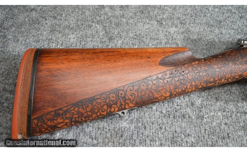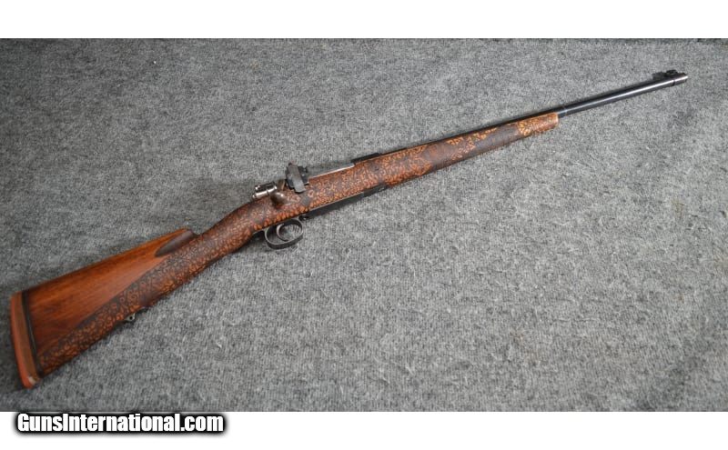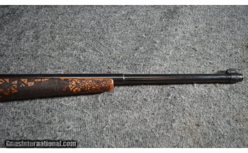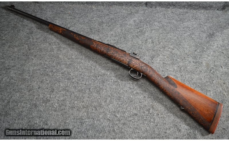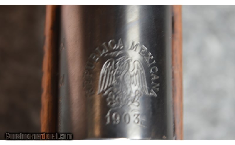 Description: Rifle bore is in very good condition. Finish shows minor wear, but original bluing is still intact and in very good condition. Barrel has been cut down from the original length to 24 inches. Rifle stock has been completely replaced. Original rear sight has been removed and replaced with an aperture sight mounted on the rear of the receiver. Receiver marked with Republic of Mexico seal. 7x57 Mauser SOLD Metal Condition: Very Good Wood Condition: Very Good Bore Condition: Very Good Barrels: 24 Weight: 8 lbs. Sights: "Fixed front sight, rear aperture sight. Item Location: Gainesville, VA |