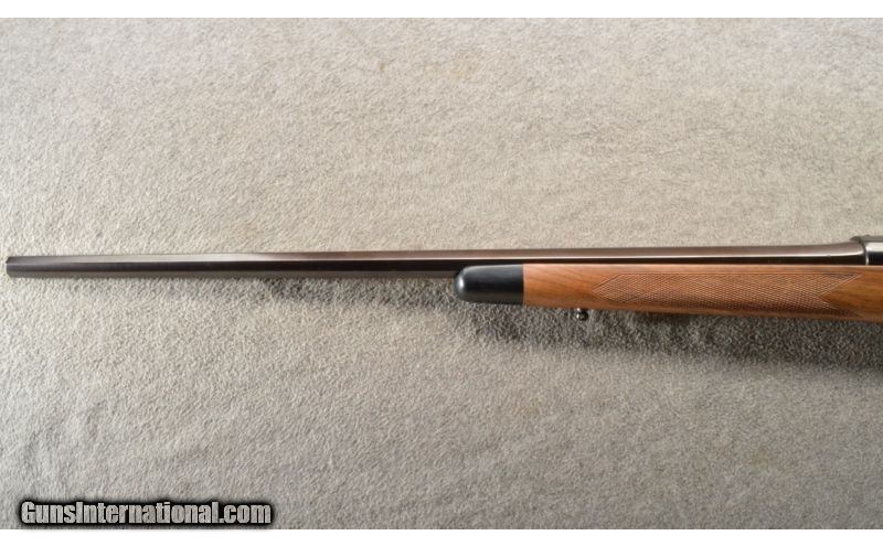 Description: This very nice custom rifle features a commercial Model 98 action, tapered 24 inch octagon barrel, Winchester style safety, and deluxe English walnut checkered stock with cheek rest. The blue is like new with a deep shine. The barrel and receiver are expertly fitted to the stock. The receiver is also drilled and tapped for a scope base. This is a sharp looking rifle and ready for your next hunt r trip to the range. .30-06 Springfield SOLD Caliber Info: .30-06 Sprg. Chambers: Bolt action repeater. Metal Condition: Excellent. Wood Condition: Excellent. Barrels: 24 inch tapered octagon. Triggers: Single blue. Stock Dimensions: 13 1/2 inch LOP. Fore End: Matching checkered walnut with an ebony tip and a sling stud. Butt Pad: Red/Brown rubber butt pad. Sights: Drilled and tapped for scope bases. Item Location: Owatonna, MN |