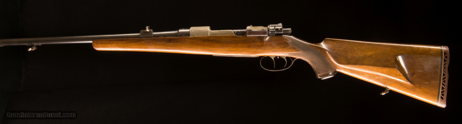 Description: This is a super nice rifle in excellent condition and extremely well made. See : ://waffen-ecker.at/ TWaffen Ecker (Arms Ecker) Inh. Johann Ecker (Owner) Karl Loy Str. 3 (Str. is Texan!) 4600 Wels Austria Phone/Fax +43 (7242)46737he makers shop still exists in Austria. ( SOLD Manufacturer: Johan Ecker Wells, Austria (Near Ferlach) 8x57S Commercial Mauser 98 Serial Number: 1460.50 Ejectors: No Barrels: 24.5 Barrel Type: Steel Gauge Info: Caliber LOP: 14" over 3/4" pad Weight: 6 lbs. 13 1/2 oz. Choke Left: NA Choke Right: NA Proof:Nitro: 8x57S (8 mm Mauser) Minimum Wall Thickness Left: NA Minimum Wall Thickness Right: NA |