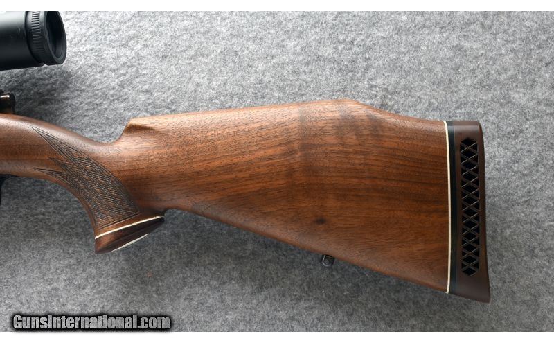Description: 7mm Remington Magnum SOLD Metal Condition: Shows very good factory finish with most wear showing on the edges of the floor plate. Finish has aged to an attractive bronze patina. Wood Condition: Shows very good factory finish with minor handling marks. White spacers have shrunk over time. Barrels: 26 Stock Dimensions: 14 1/4" LOP Butt Pad: Factory. Sights: Nikon Monarch 3 - 12 x 40mm w/ BDC Reticle. Item Location: Post Falls, ID |