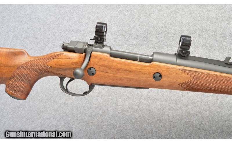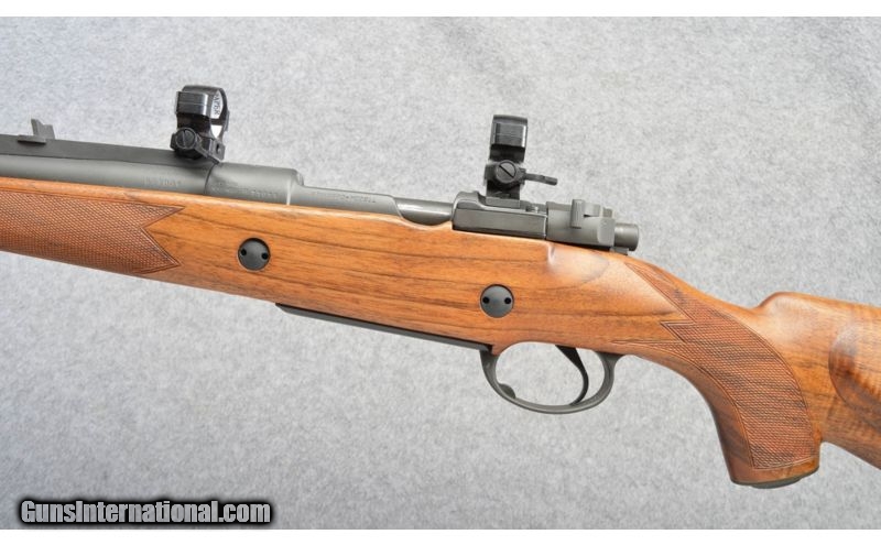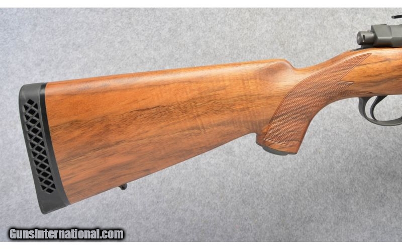 Description: High condition Mauser commercial bolt rifle in .375 H&H. The rifle has a custom stock with very nice walnut and a cheek peice. The rifle comes with a set of rings and well as safari sights. SOLD Caliber Info: .375 Holland & Holland. Metal Condition: Satin Blue, Excellent Wood Condition: Oil Rubbed Bore Condition: Bright and Sharp Barrels: 22.5 inch matte finished with sights. Triggers: Single. Stock: High grade walnut with a checkered pistol grip, raised cheek, and 2 cross bolts. Stock Dimensions: 13 7/8 inch LOP. Fore End: Matching checkered walnut. Butt Pad: Black whiteline vented butt pad. Weight: 9 Lbs 6 Oz. Sights: Standing rear and a blade front along with rings. Item Location: Buda, TX |