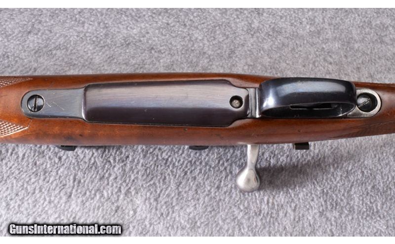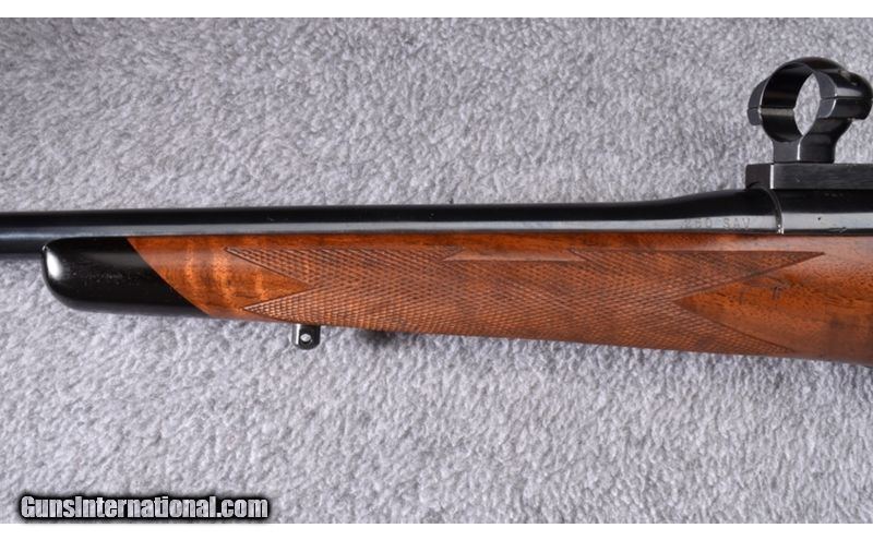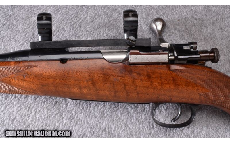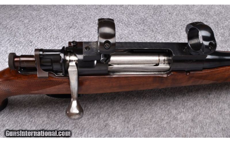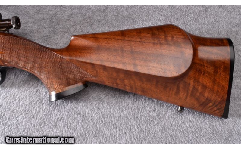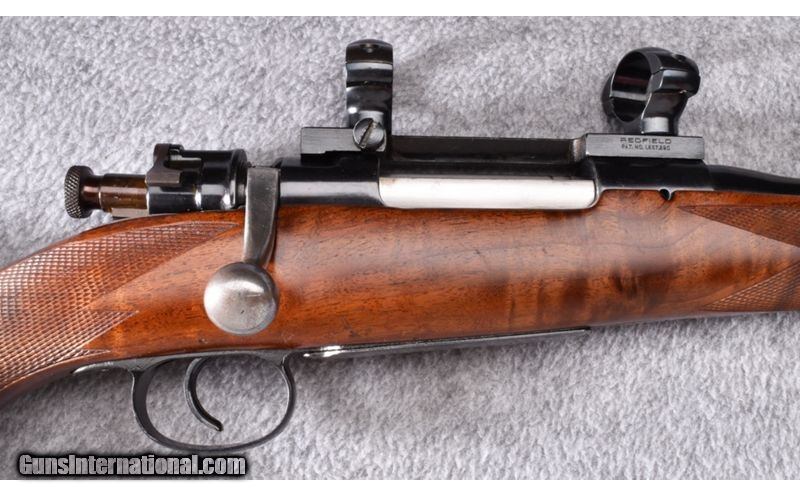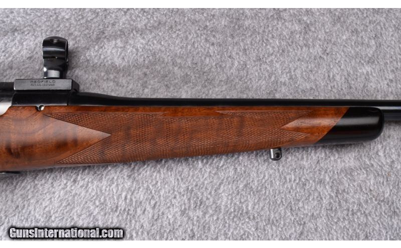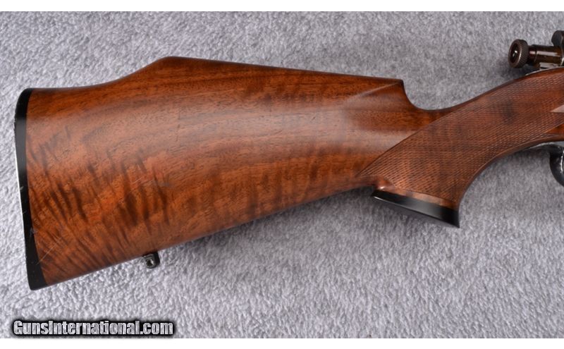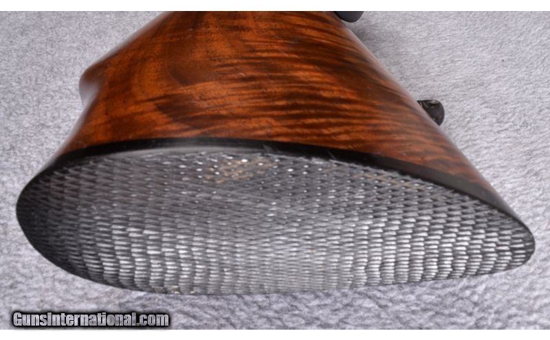 Description: This Mauser controlled round feed action was customized by an unknown gun maker. Wood is beautifully figured with a satin finish. Blue is very good showing only light use marks and some chips around trigger guard. Bore is excellent. In carbine format, this little gun is an eye catcher! .250 Savage SOLD Metal Condition: Excellent Wood Condition: Excellent Bore Condition: Excellent Barrels: 18 Triggers: Original Stock Dimensions: 13 1/2" LOP Fore End: Checkered Walnut European Black Pistol Grip Cap with Monte Carlo Cheekpiece - Checkered Walnut with Black Forend Butt Pad: Checkered Black Synthetic Butt Plate Weight: 7 LB. Sights: None - Redfield Scope Mount and Rings Attached Item Location: Wheeling |