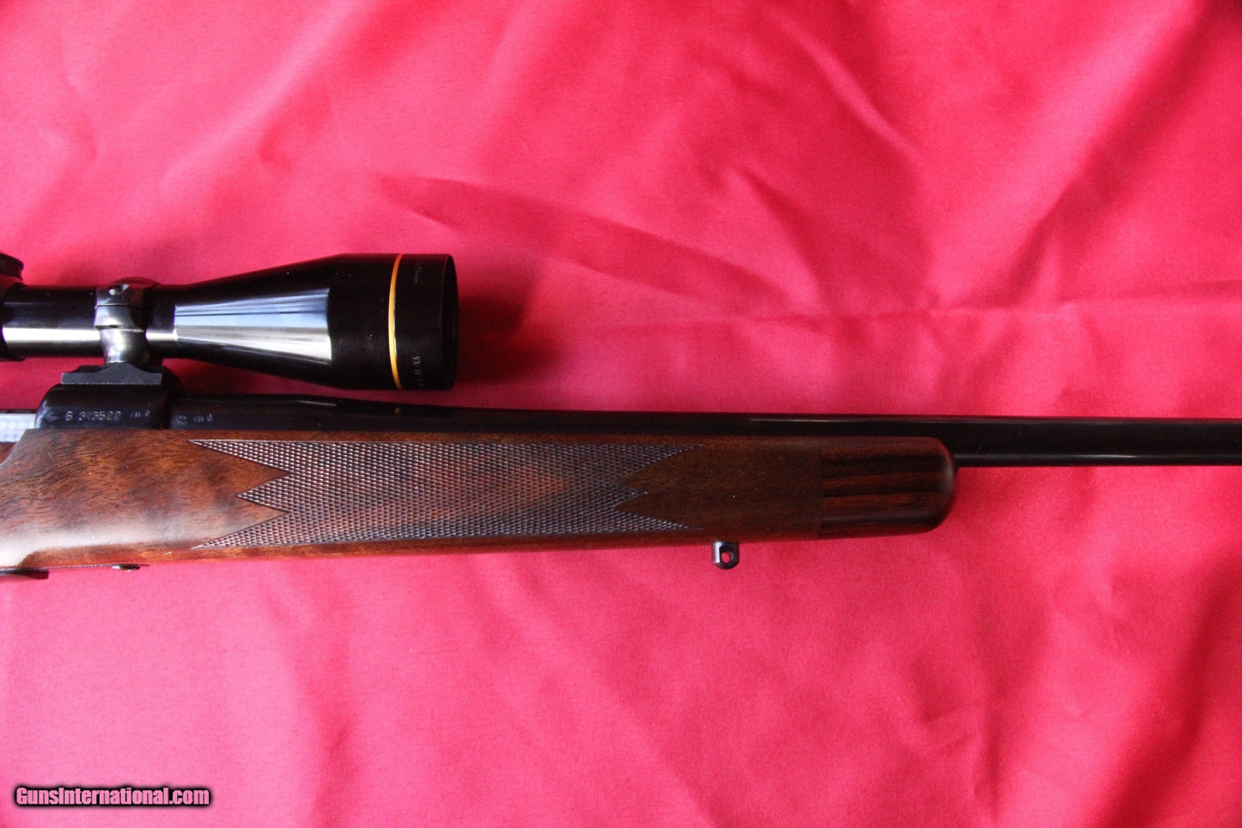 Description: Mauser Custom 30-06 on a Interarms Action 30-06. Excellent condition! The bolt is beautifully jeweld Look closely at the stock. See the sharp shadowline cheeckpiece, the detailing around the bottom of the bolt release as well as the detail around the bottom of the bottom metal and it is constucted so it will not warp with an inner layer of wood-vineer like. It has a wood grip cap and for-end tip as well a recoil pad. The wood is also an up-grade 1 It comes as pictutured with a Leupold 3X9 scope with a bright blue finish to match the excellent bluing. Try to match this rifle for the low price! Shipping is $89 insured in a hard case. SOLD Rifle Caliber: .30-06 Springfield Manufacturer: Interarms Model: Mark 10 Barrel Length: 24 Condition: Excellent Metal Condition: Excellent Wood Condition: Excellent Bore Condition: As new LOP: 13 3/4 |
