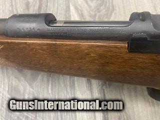 Description: Guns Listing ID: 388186 This Chilean Mauser Model 1895was manufactured by LUDWIG LOEWE ARMS COMPANY of BERLIN. It has been converted to 7.62x5, is marked 7.62 on the receiver and .308 on the magazine floor plate, The stock has a few minor blemishes which should be visible in the pictures. The rifling is strong. There is evidence of minor pitting, but the bore is fully serviceable. This would make a great addition to your collection of shooters. SOLD Manufacturer: MAUSER Model: Mauser Chileno Modelo 1895 Caliber Info: 7.62X51 Condition: Used - Non-Certified Barrels: 22 BARREL Finish: PARKERIZED |
