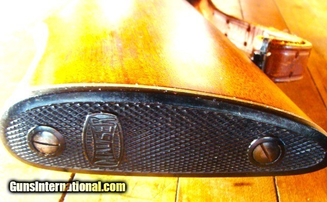 Description: From a Midwest sale a beautiful model 66 Mauser in 30-06 caliber. Beautiful straight grained walnut stock with a right hand cheek piece. Adjustable double set trigger. 22" barrel with nice bore and gloss finish. The stock is fitted with a Mauser butt plate. The receiver has a detachable scope mount installed as well as having iron sights. The iron sights can be used with the scope mount base installed. The stock has a rose wood nose cap and pistol grip cap. I have carefully looked over this rifle and it does have a few handling marks but overall is in excellent condition (I have not cleaned or taken this gun apart). This is a beautiful used Model 66 Mauser designed to be use with interchangable barrels and is in a desirable caliber; therefore, I am offering this rifle with a 100% satisfaction guarantee. If it fails to live up to your expectations in any way, return it for a full and speedy refund including your return shipping (see my feedback). We trade guns. No reserve. ****Payment Notice**** Business check, Certified check or money order only, personal checks with prior approval. If you are asked to send payment via electronic transfer or to any other address than listed on the invoice you are bing scammed by hackers. My US Postal box is a secure address . ****Please Read**** I do not recommend firing any weapon until it has been thoroughly examined by a certified gunsmith. Sorry no California sales. Ship to FFL holder only. Shipping $35.00 which includes a tracking number emailed to you.Insurance is optional. Missouri residents pay 8.45% sales tax where applicable. SOLD |