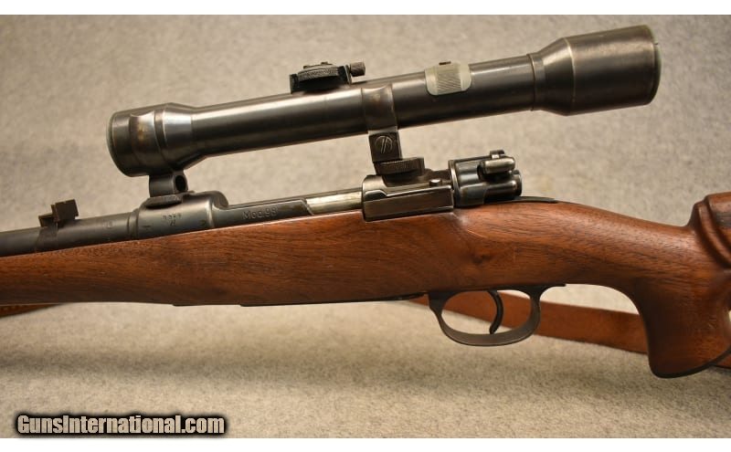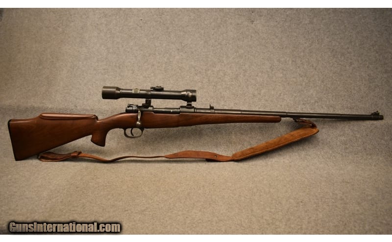 Description: This Mauser Model 98 7.65 is in very good condition for its age. It has the German Waffenamt proof mark on the left lower barrel. Very nice gun for any collection. 8mm Mauser SOLD Chambers: 7.65mm with 4 round magazine Metal Condition: Very Good Wood Condition: Very Good Bore Condition: Very Good Barrels: 22 Fore End: Wood Butt Pad: Bishop Weight: 6 Sights: K. Kahles Heliavier scope Item Location: Kansas City, KS |