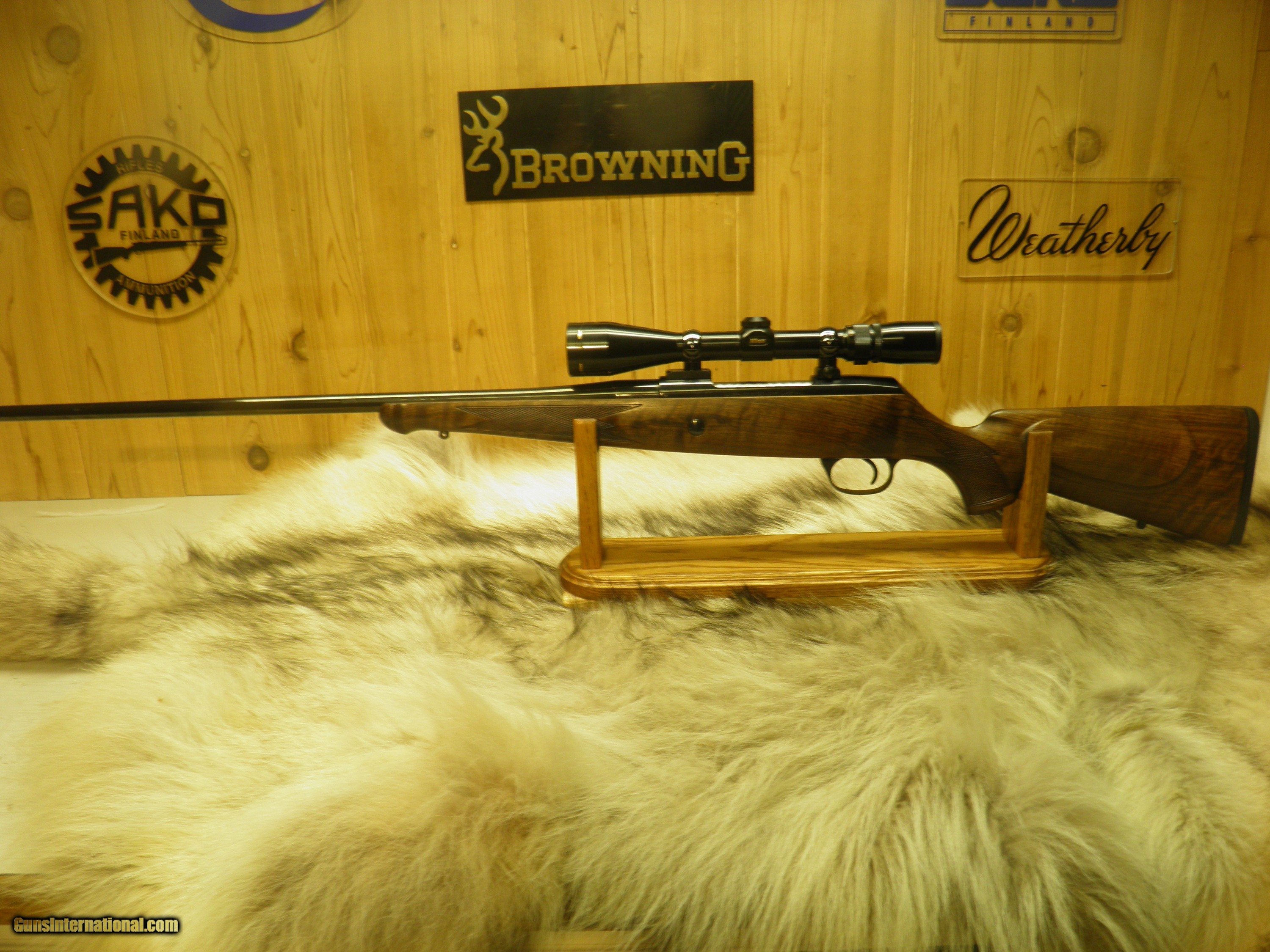 Description: MAUSER MODEL 99 CLASSIC CAL. 270 WEATHERBY MAG, 26" BARREL MARKED WERKE OBERNDORF, FREE- FLOATING FACTORY BARREL, BOLT IS JEWELED AND , HAS A 60 DEGREE THROW, CLAW EXTRACTOR, ADJUSTABLE TRIGGER,, THREE SHOT MAGAZINE, AMERICAN WALNUT WITH SCULPTURED CHEEK-PIECE, SCHNABEL FOREARM, WOOD IS FINISHED IN A HAND RUBBED OIL, VERY NICE HAND-CUT CHECKERING ATTACHED SWIVEL STUDS, LENGTH OF PULL 13 1/2", OVERALL LENGTH 46" , WEIGHT 7 3/4 LBS, INCLUDES NIKON 3 X9 SCOPE, "CONDITION" NEW AND UNFIRED!! 'SOLD' SOLD |