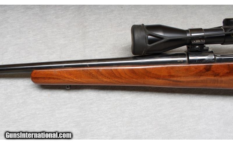 Description: Custom Mauser Model 98 chambered in 6.5-06 A-Square. This rifle features a 24-inch barrel and a beautiful oiled walnut stock. This action and barrel are blued. It has a Nichols 3-9x40 MM scope. The rifle is in very good condition with the stock having only a few very minor handling dings/handling marks. The 6.5-06 A-Square has power similar to that of the .270 Winchester and .308 Winchester, making it suitable for hunting medium-sized game such as deer and black bear. 6.5-06mm SOLD Metal Condition: Very good Wood Condition: Very good Bore Condition: Bright Barrels: 24 Inches Triggers: Adjustable aftermarket Stock Dimensions: 14 Inches Fore End: Smooth walnut Butt Pad: Rubber pad Sights: Nichols 3-9x40MM Scope Item Location: La Vista, NE |