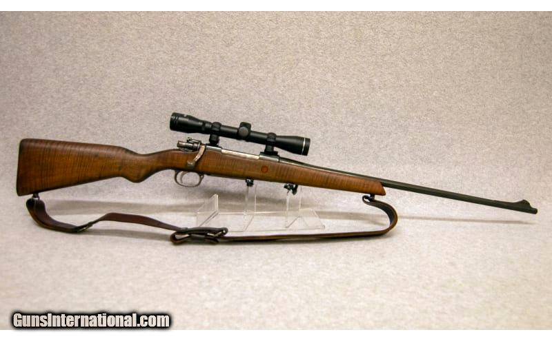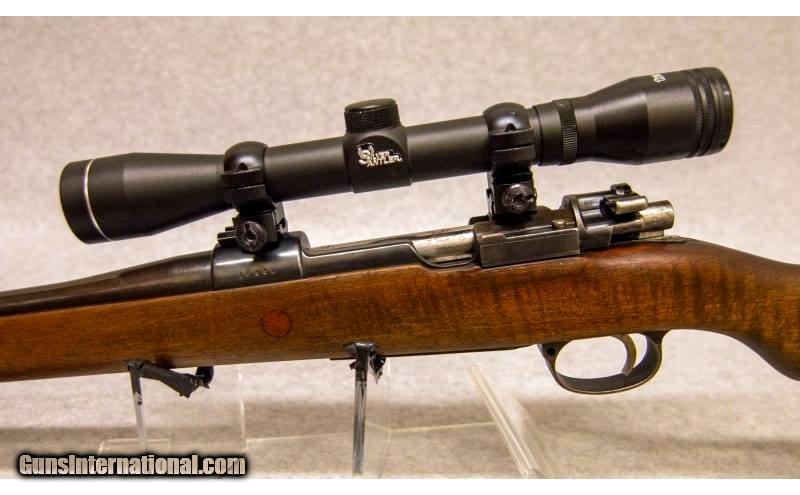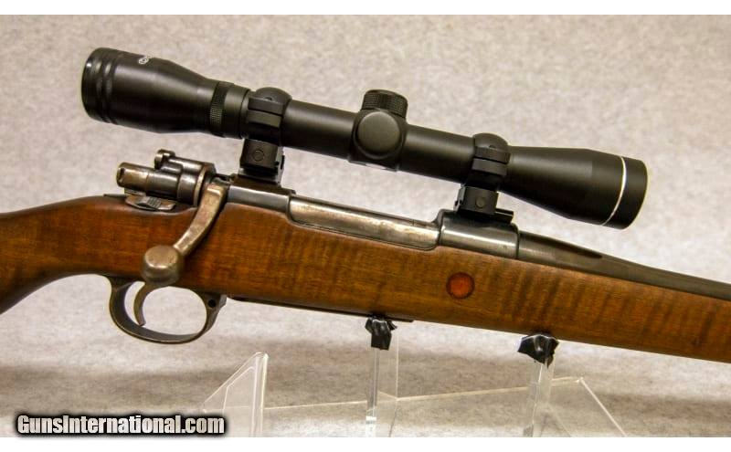Description: We aren't sure where this Mauser rifle originally comes from as the scope mount covers the receiver marking. Best guess would be that this was a Spanish Mauser chambered in 7X57 mm Mauser but has now been rebarreled for .243 Winchester. The metal butt plate appears to be original as well as the stock though this has been cut down. The bolt handle has been turned down and shaved. A new safety has been added behind the bolt handle as well. Bore is shiny and clean and there is a JP Sauer marking on the bottom of it, but the stock is covering the rest. A Tasco scope has been mounted. Despite all that has been done to it , this is still a good first hunting rifle for anyone wanting to get into shooting. .243 Winchester SOLD Chambers: .243 Win Metal Condition: Good Wood Condition: Very Good Bore Condition: Excellent Barrels: 24' Stock Dimensions: 13' Butt Pad: Metal Sights: Tasco Scope Item Location: Fort Mill, SC |