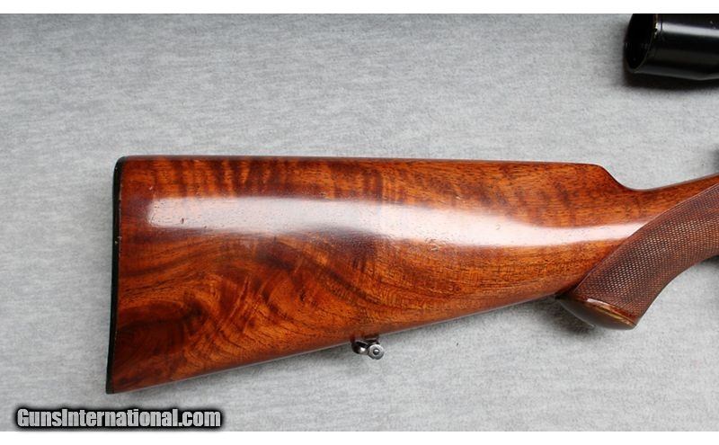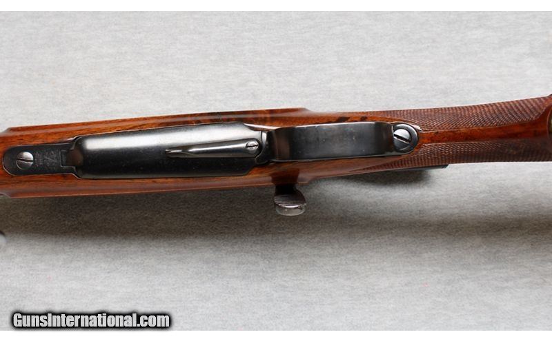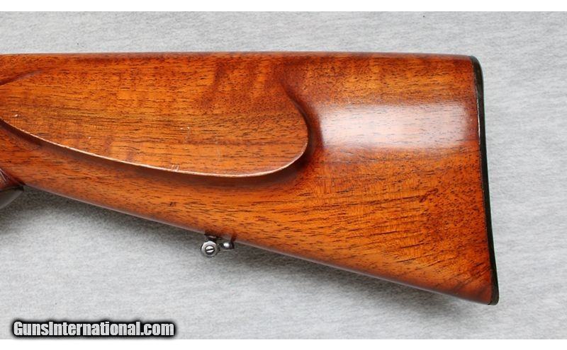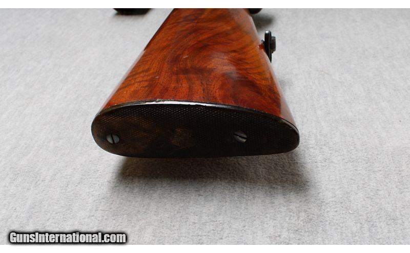 Description: Custom Mauser Oberndorf Model 98 fitted with a 20 1/2-inch barrel and a beautiful checkered Mannlicher high gloss walnut stock. This rifle is blue finished and chambered in 7mm Mauser. The rifle is in excellent condition with the stock having only a few very minor handling dings/handling marks. The craftsman of this gun is unknown, regardless, it is a good-looking rifle. 7x57 Mauser SOLD Metal Condition: Excellent Wood Condition: Very good with a few handling marks Bore Condition: Bright Barrels: 20 1/2 Inches Triggers: Double set trigger Stock Dimensions: LOP 14 Inches Fore End: Smooth Walnut Butt Pad: Hard butt pad Sights: German Hensoldt/wetzlar Dural-dialytan 4x Rifle Scope in a Claw mount Item Location: La Vista, NE |