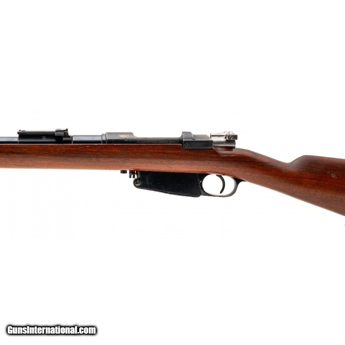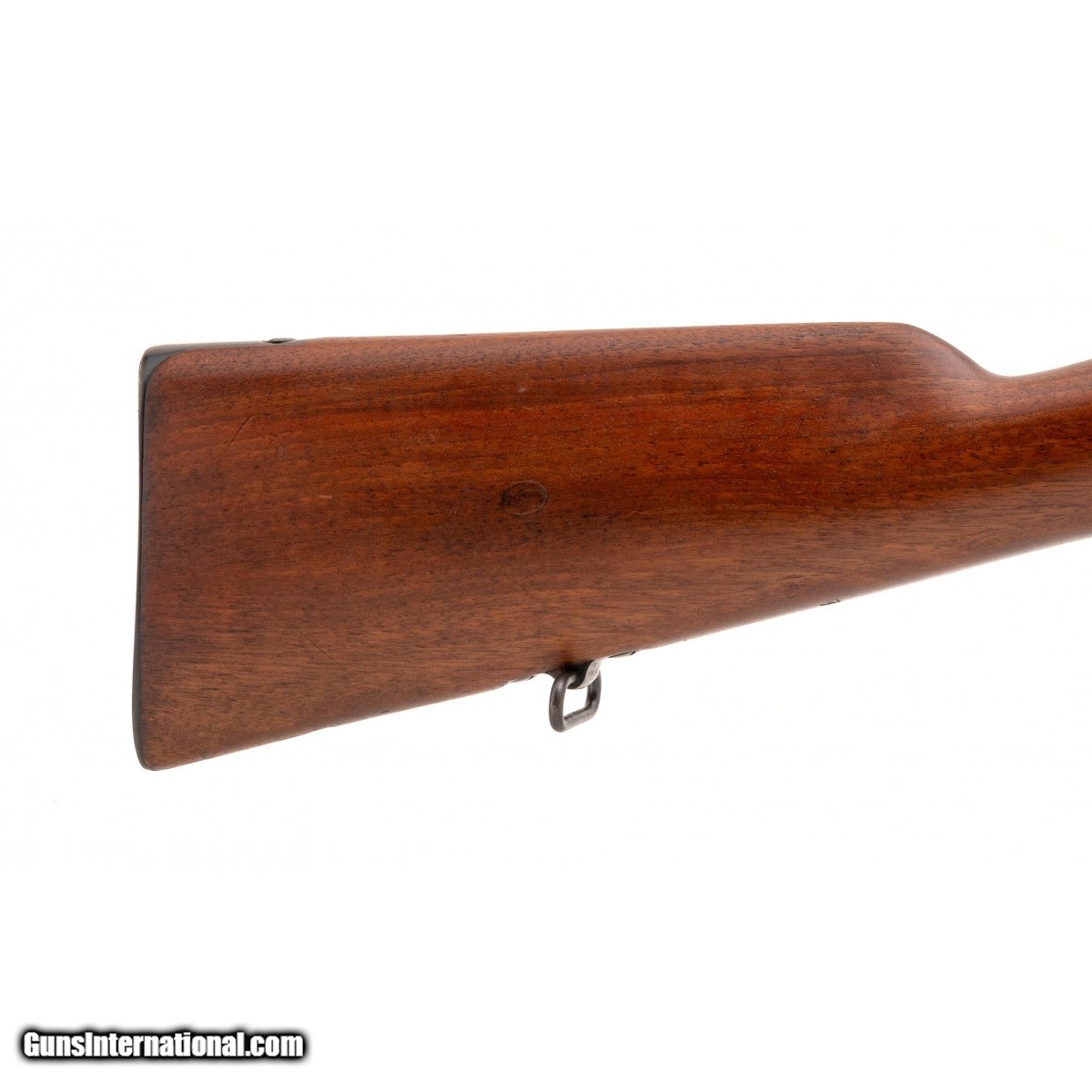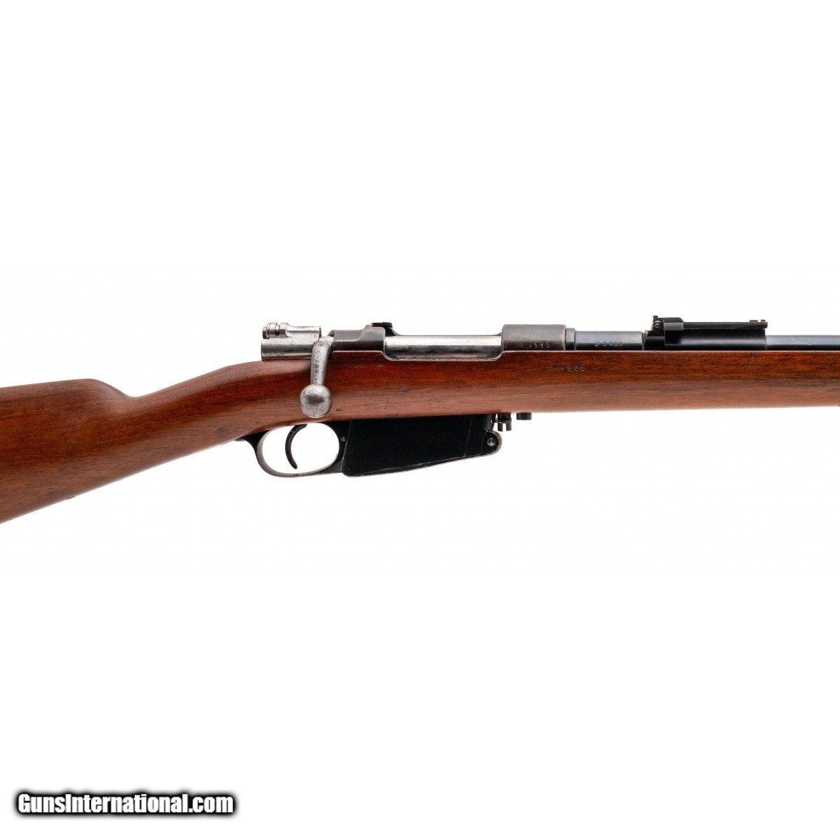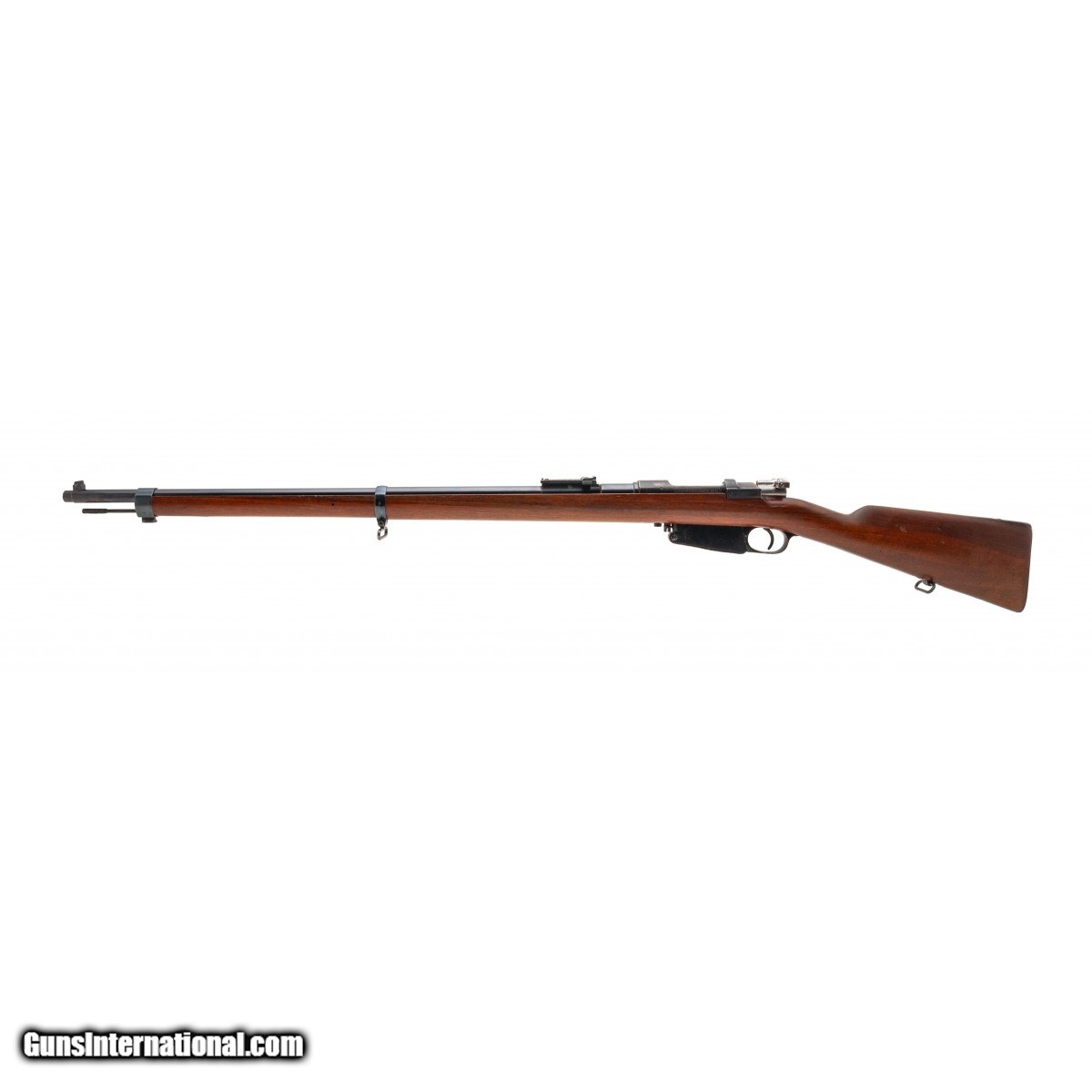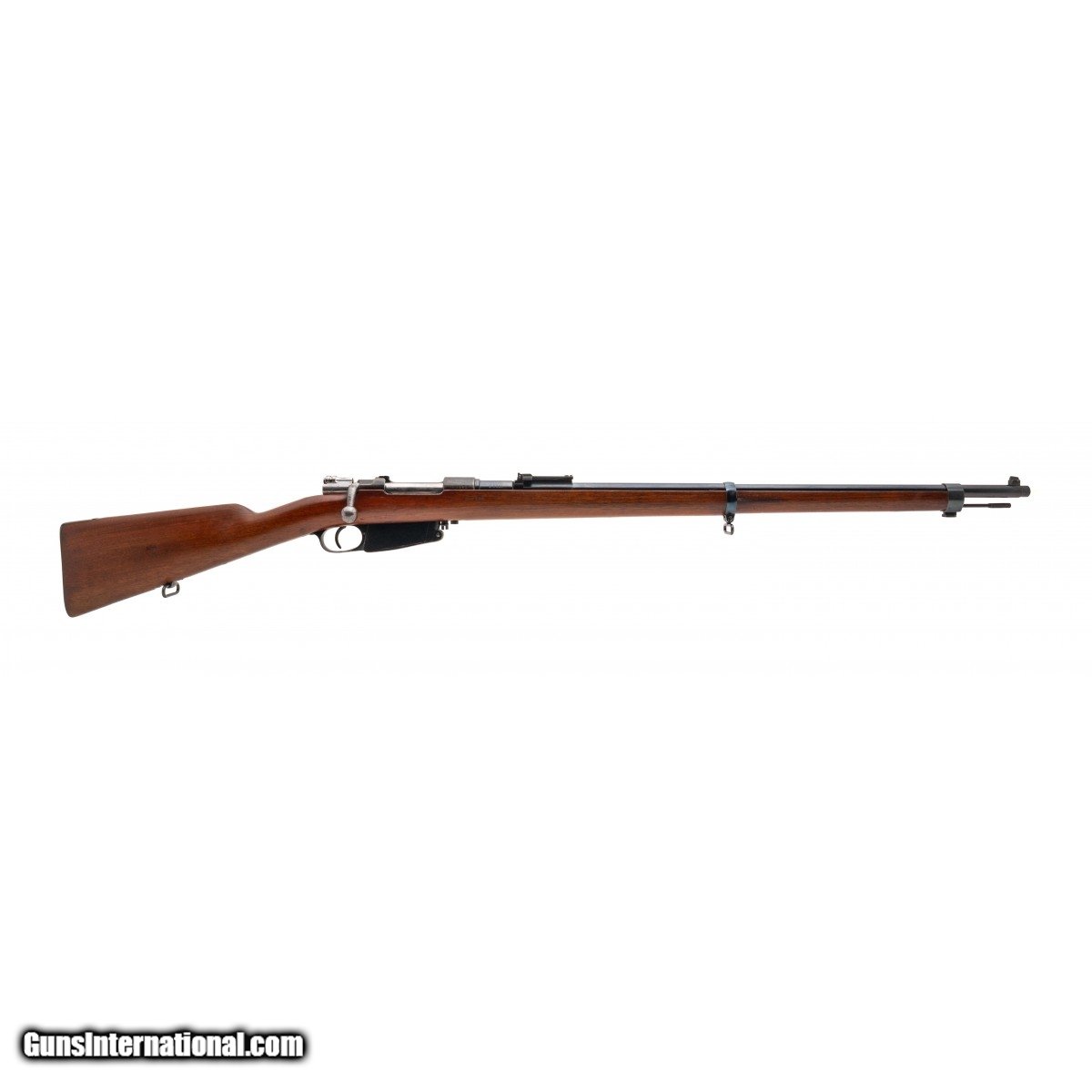 Description: " SN: B4150. Stock and barrel are non matching. Made in 1892. 7.65x53 with a 29.5"" barrel. Bore is very good with strong rifling. Bolt action Argentine military rifle. Receiver retains little blue and has gray patina, barrel retains 97% of blue. Rifle has walnut stock that is in very good condition with very little handling wear, rifle is missing the handguard. Barrel has ""MB"" marked on the barrel which is the test firing proof mark, barrel has been re blued. the Argentine crest is visible on top of the receiver. Overall condition is very good. SOLD Antique: Yes |