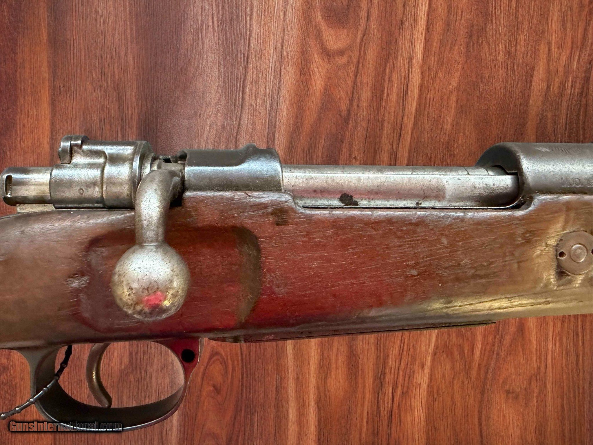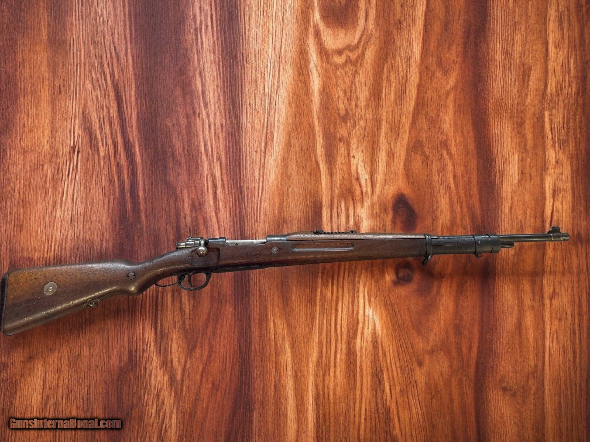 Description: Here we have a beautiful example of a German Waffen Mauser Sporting / Military Rifle; the Model 1908. Chambered in 7x57mm Mauser with a simple tangent-leaf sight and longer upper hand guard. Overall a truly great conditon rifle and part of history. First produced by Deutsche Waffen und Munitionsfabriken (DWM) and Mauser, they were exported to Uruguay and Brazil and soon after the Brazilian War Material Industry began producing upgraded versions of them, until the Waffen Mauser rifle was eventually replaced by the FN FAL. The Deutsche Waffen und Munitionsfabriken (DWM) and Mauser were the original producers of this firearm and would begin exporting rifles to South American nations like Uruguay and most famously Brazil would adopt these rifles. Brazilian War Material Industry (IMBEL) would produce upgraded versions of this rifle until they were replaced by the FN FAL. When the Brazilians got rid of their rifles they sent many surplus units to the Dominican Republic. These models are distinct because the Brazilian markings would be replaced with Dominican markings and the desginated model 1953. When the US intervened in the Dominican Civil War many of these rifles were preferred over the M16 rifle due to the cartridge having better performance over 5.56×45 NATO at long ranges. Known for its accuracy, controlability and precision...great for the collector, shootist and hunter. **add 3% for all credit cards ** must be shipped to a licensed FFL ** shipping costs are actual shipping costs plus insurance Rifle Caliber: 7x57mm Mauser Manufacturer: Deutsche Waffen- und Munitionsfabriken (DWM) Model: Model1908 Waffen Mauser Serial Number: B1916 Barrel Length: 29.3 Bore Info: 2/5 rifled Condition: VG Metal Condition: VG Wood Condition: VG - Imbuia (Brazilian walnut) Bore Condition: Good Barrels: 1 Blued Steel Barrel Type: Rifled Action: Bolt-Action Stock: Full Length Imbuia Brazilian Walnut Fore End: Imbuia Brazilian Walnut Finish: Polished Weight: 9lbs Sights: Iron Sights (up to 2,200 yards) Manufacture Date: 1919 Case: No Case Item Location: New Hudson, MI Price: $1,199.00 Contact Seller |
