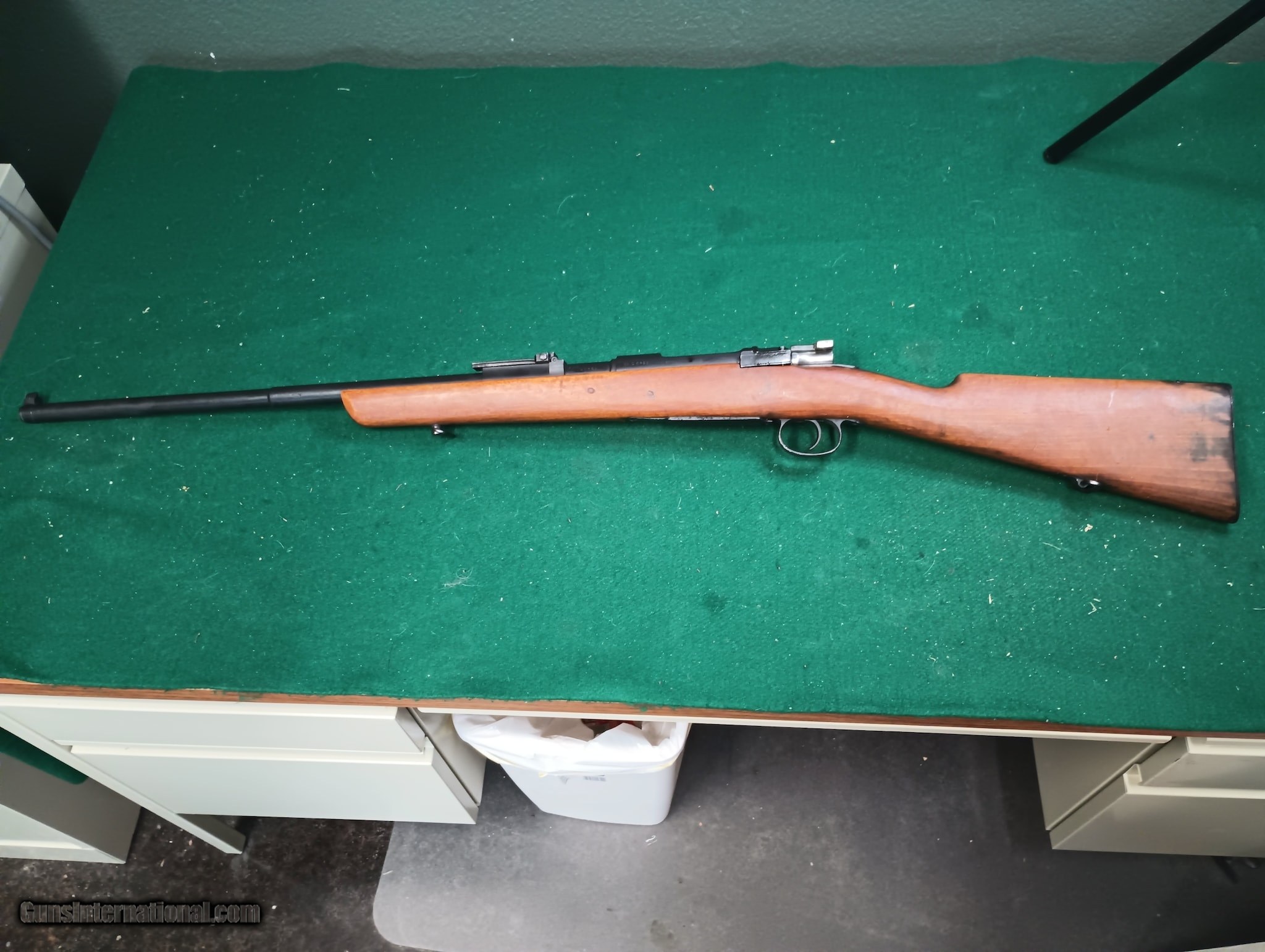 Description: Guns Listing ID: 761530 This German made 1895 Mauser is chambered in 7X57mm with a 23” barrel. The stock has been sporterized and the barrel painted black. Bore is fair. SOLD Manufacturer: DEUTSCHE WAFFEN Model: 1895 Mauser Caliber Info: 7X57MM MAUSER Condition: Used - Non-Certified Barrels: 23 BARREL Finish: BLUE STEEL |