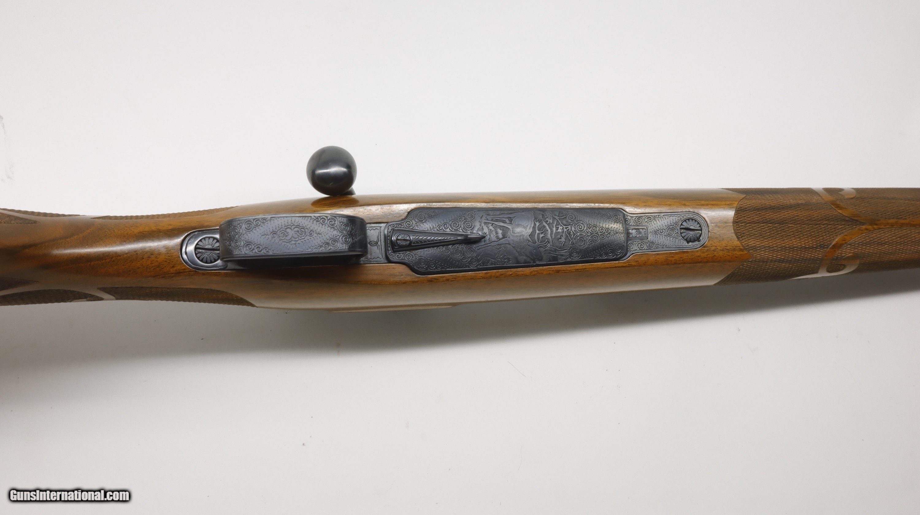 Description: G. Reichmuth Commerical Mauser, 7x57 Mauser, 24" barrel with a solid rib, factory open sights, factory drilled and tapped for modern scope. bases shown are included. SN is 4289. Consigner says it was made between WW1 and WW2. Beautiful rifle, looks to have hardly been shot at all. Perfect bore, actoin is smooth as glass. Top of the line German rifle. We will trade for silver and gold. All my guns (except Layaway) come with a non-firing, 3 day unconditional return privilege, from the day UPS delivers to your dealer. Buyer pays shipping both ways if the gun comes back. Please make sure to make it to your FFL to inspect within the 3 days. We accept personal check, any certified funds, Vennmo or Zellle. We can also take your credit card, +3%. Email me if you would like these pictures sent to you, they will come through bigger and better than on the listing page here. We do offer Layaway. Our standard terms are 25% down, 90 days. Initial deposit is not refundable. Layaway guns do not have an inspection or return policy. Email me with any questions. Please check your local laws to confirm it is legal to own in your state! Buyer pays $60 shipping and insurance in a brand new PLANO hard case to your FFL in the lower 48. AK, HI or PR is extra. I will ship to California, as long as it is legal, NO PROBLEM! I am a licensed FFL, and will include a copy of my FFL with the gun for your dealer’s records. I will ship to a C&R if the gun is eligible. I will ship to California, but you need to confirm the gun is legal where you are, California or other. WE BUY AND CONSIGN GUNS AND GUN COLLECTIONS! We will travel to pick up collections! I am always looking for good clean, old original Winchesters to buy, consign, or trade, especially Pre '64's model 70's and model 54's. WE ALSO TRADE FOR CLASSIC CARS AND TRUCKS! We also trade for gold and silver. SOLD Rifle Caliber: 7x57mm Mauser Manufacturer: Mauser Model: 98 Barrel Length: 24 Condition: used |
