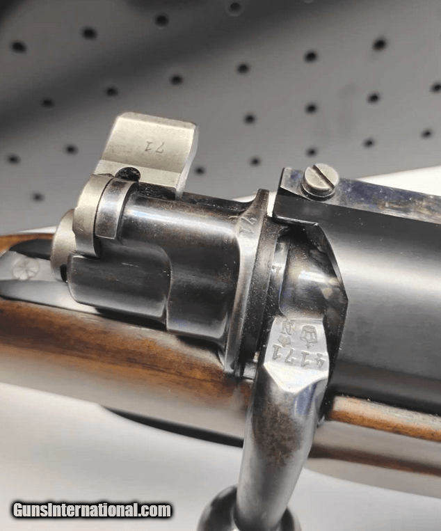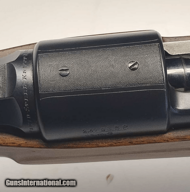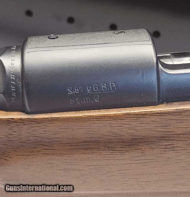 Description: GOT A REALLY NICE J.P. SAUER & SOHN MAUSER 98 SPORTING RIFLE IN 8MM MAUSER. PRE WWII PROOF STAMP 2,67 IS POWDER CHARGE. G.B IS FLAKE POWDER PROOF MARK. CIRICA 1905-1939. NONE MATCHING BOLT. DOUBLE SET TRIGGERS. LEVER MAGAZINE RELEASE. FINE CHECKERING WITH HALF HEX BARREL WITH SLING SWIVELS AND FLIP UP SIGHTS. PLEASE SEE PHOTOS. WE DO NOT CHARGE CREDIT CARD FEES!!!! Price: $2,400.00 Contact Seller |