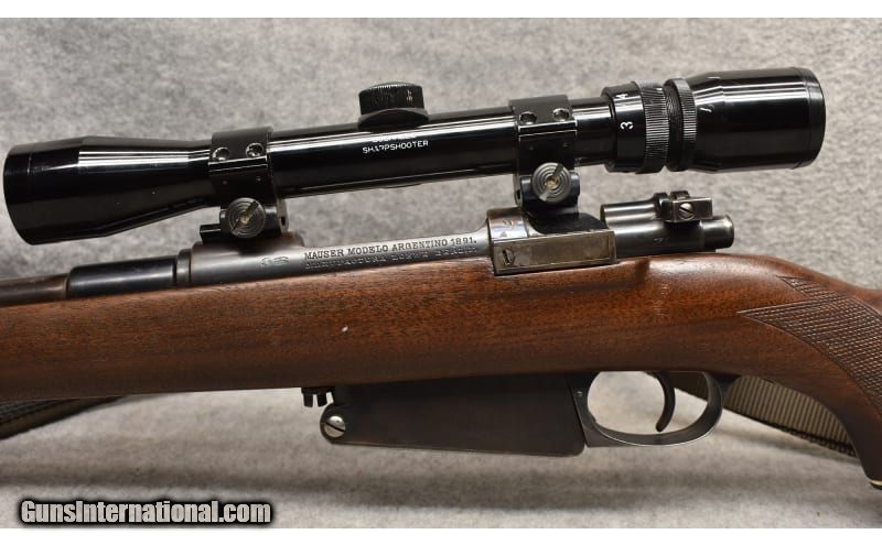 Description: This Loewe Mauser Modelo Argentino 1891 is in very good condition for its age. There is a small amount of surface rust on the scope mount but none on the receiver or barrel. Stock has multiple small indentations and a very small 1 inch crack on the upper tang. This is a nice looking gun at a good price. None SOLD Chambers: 7.65 with a 4 round magazine Metal Condition: Very good Wood Condition: Very good Bore Condition: Very good Barrels: 23 Weight: 6 Sights: Bushnell Sharpshooter Scope Item Location: Kansas City, KS |